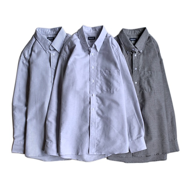Edwards Garment / Easy Care Oxford LS Shirt 老舗ユニフォームアパレルメーカーのオックスフォードシャツです。 コットン60%、ポリエステル40%の程良い厚みの生地を使用しており、通気性良くて吸汗速乾性があり丈夫で柔らかいEasy care仕様で綿ポリですけどワークシャツには無い平織りのふっくらとした風合いが、非常に着心地の良いアイテムになっています。 アメリカものらしい身頃のゆったりとしたリラックスフィットですが、袖丈が短い物をセレクトしているので袖が余らず非常にちょうど良く着る事が出来ます。 ベーシックなデザインなので、カジュアルにデイリーユースにもジャケットやニットを合わせて少し上品にも着れてオススメのオックスフォードシャツです。 178cmがGrey stripe / XLとBlack, Light Grey/Lサイズを着用。 『Edwards Garment』 1867年に設立されたユニフォームウェア、ワークウェアメーカー。 レストラン、カジノ、ホテルやリゾート、運送会社、 セキュリティ会社などのユニホームを生産しています。 ワークウェアとしてのタフさ、機能的なディティールとリーズナブルなプライスが魅力のブランドです。 カラー Grey stripe, Blue stripe, Blue サイズ M 着丈 x 身幅 x 袖丈:78 x 58 x 54 L 着丈 x 身幅 x 袖丈:79 x 64 x 54 XL 着丈 x 身幅 x 袖丈:81 x 68 x 59