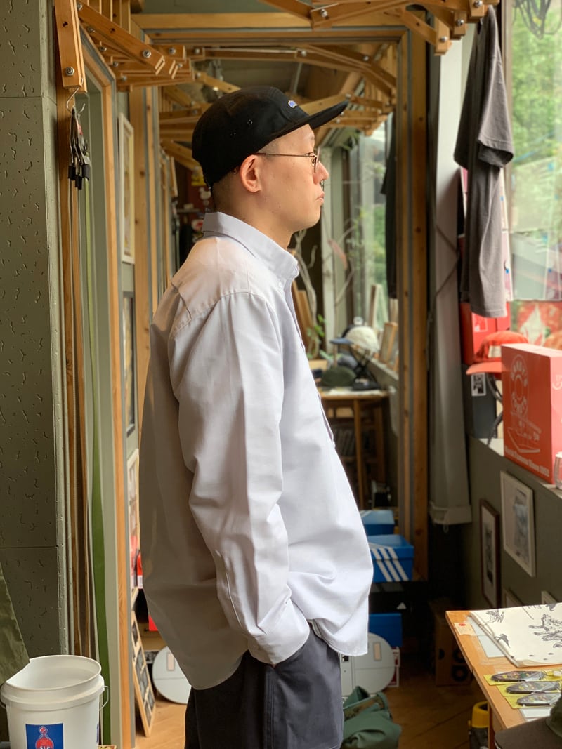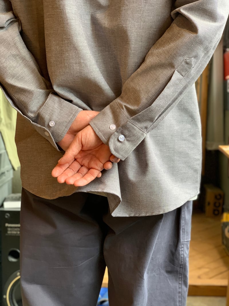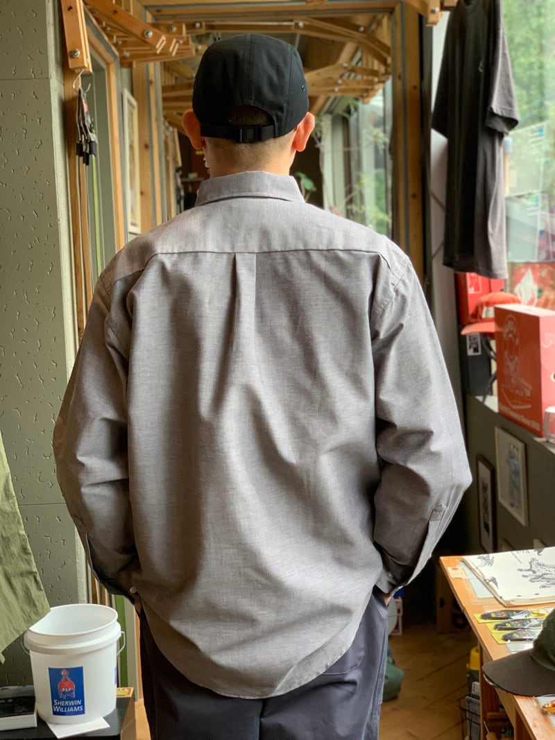 コットン60%、ポリエステル40%の程良い厚みの生地を使用しており、通気性良くて吸汗速乾性があり丈夫で柔らかいEasy care仕様で綿ポリですけどワークシャツには無い平織りのふっくらとした風合いが、非常に着心地の良いアイテムになっています。