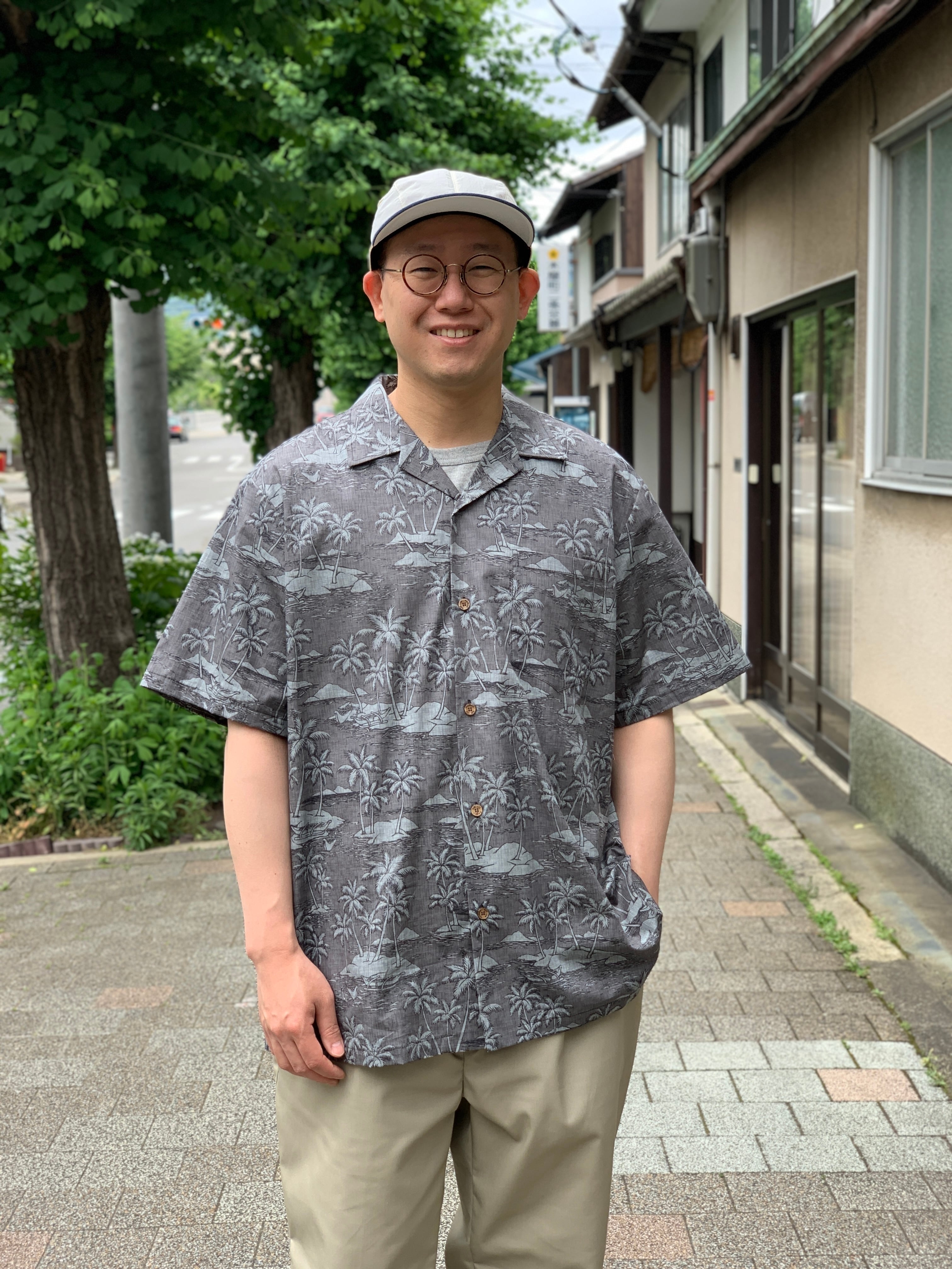 ゆったりとしたシルエットにオープンカラー(開襟)仕立てなのが涼しげで夏場に非常にオススメです。