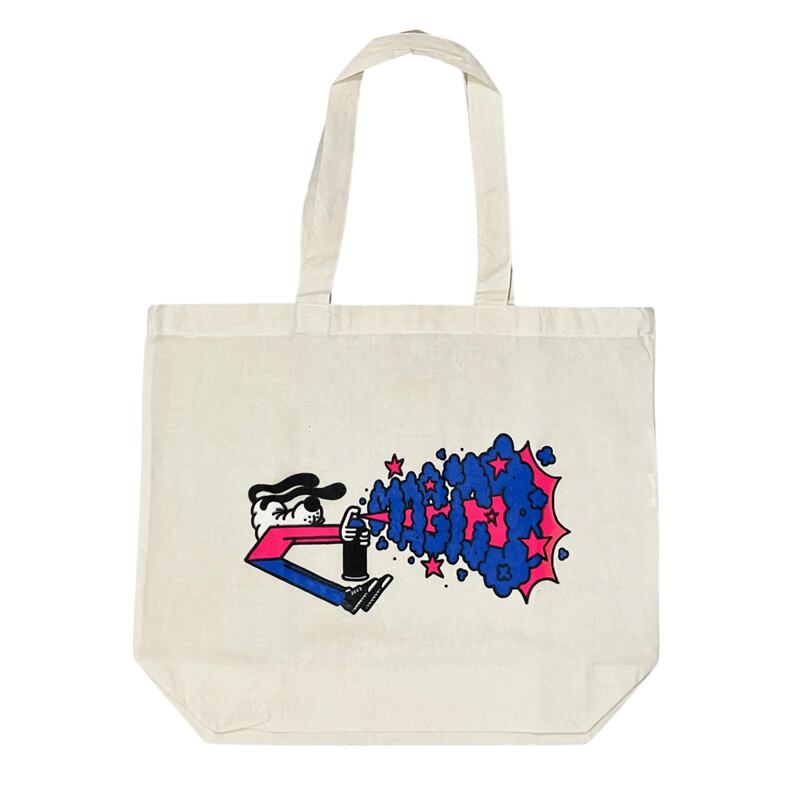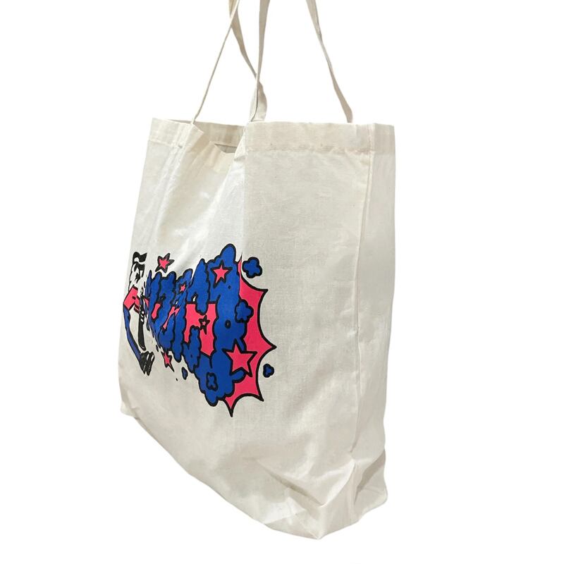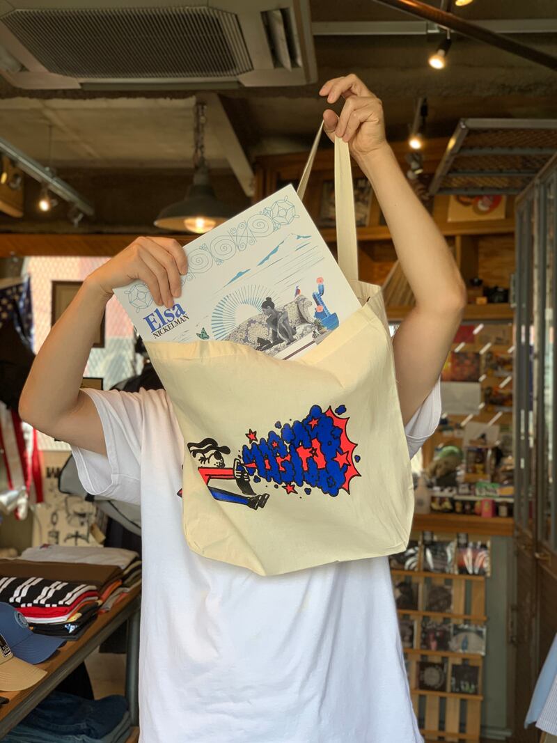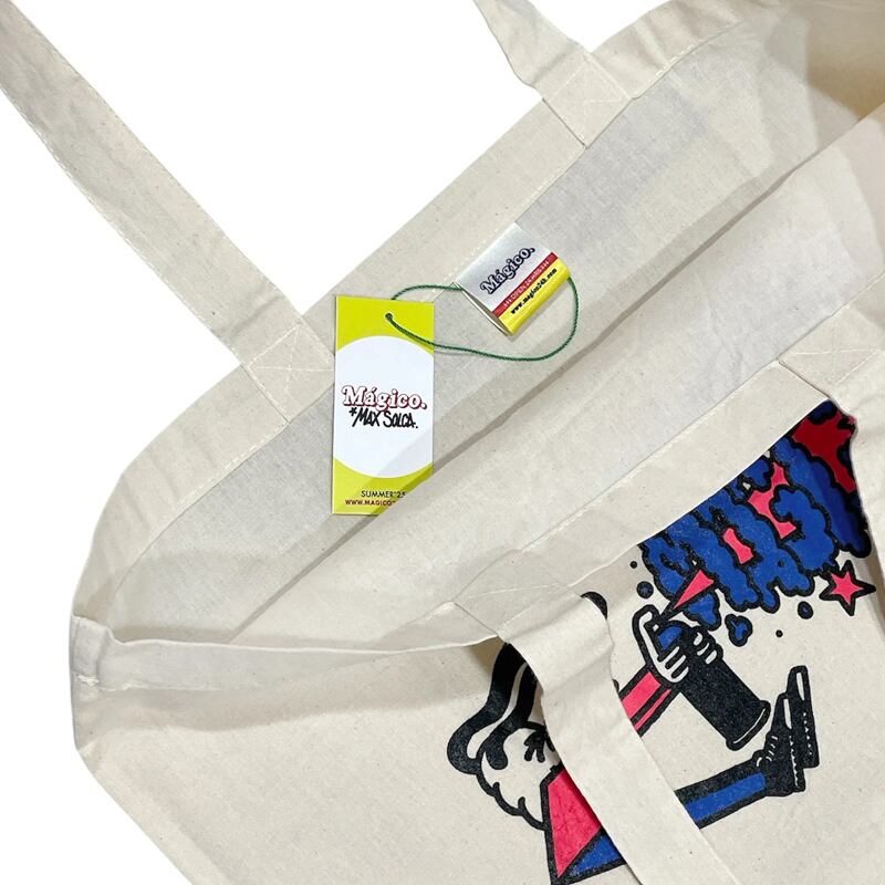 彼のイラスト作品は楽しくて新鮮で、MAGICOの皆さんの大好きなグラフィックがフロントにプリントされたトートバッグです。