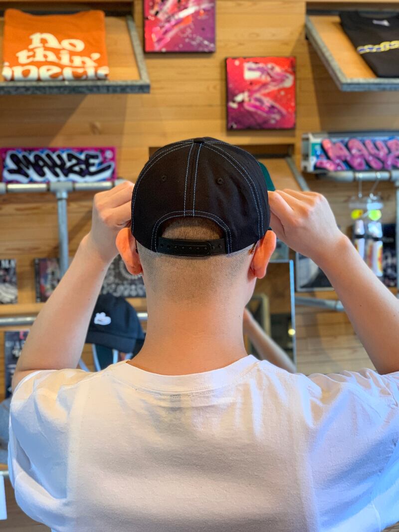 バックはスナップバックタイプにてサイズ調整可能になっており、フロントに刺繍グラフィックが入ります。