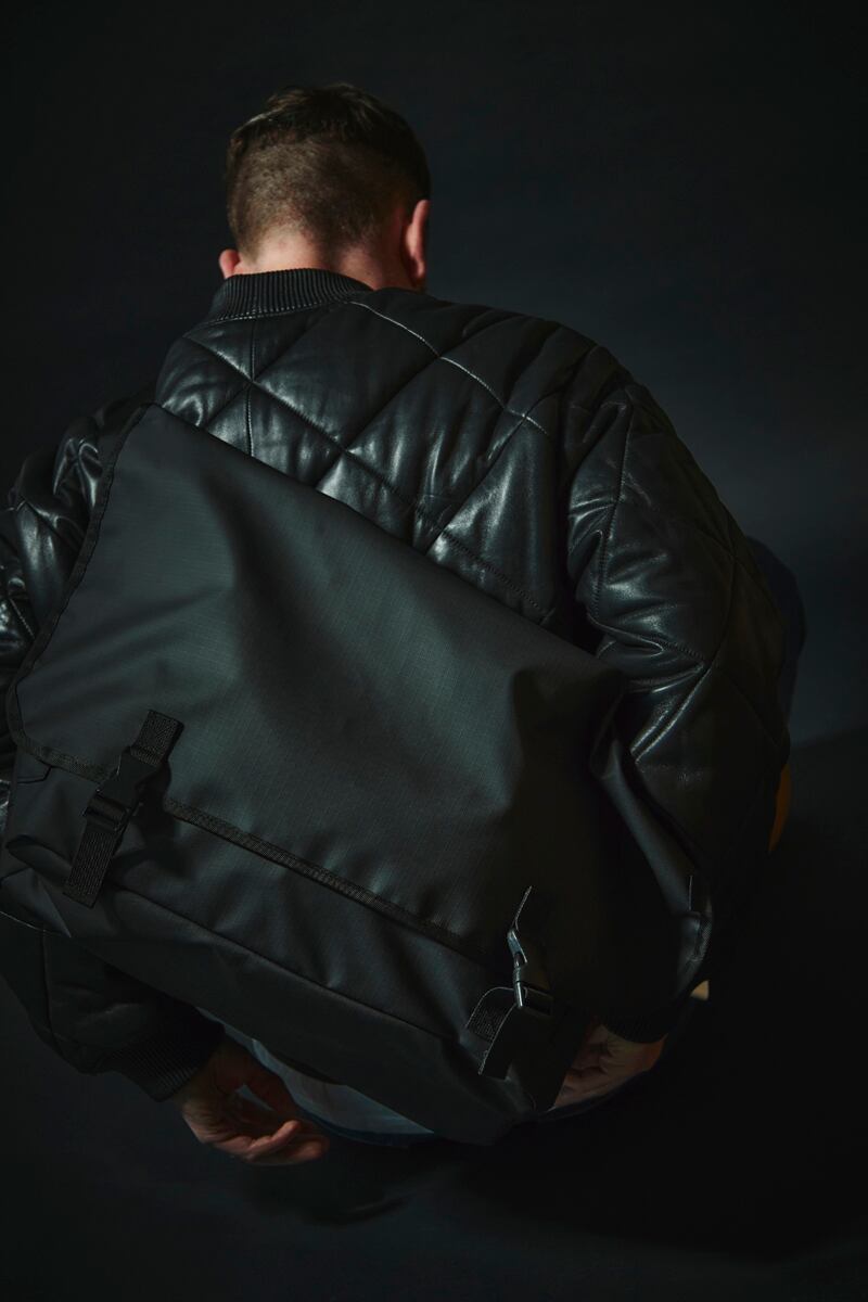 撥水性があり、レザーの様な質感のマットリップストップ素材で作られた大容量のメッセンジャーバッグです。
