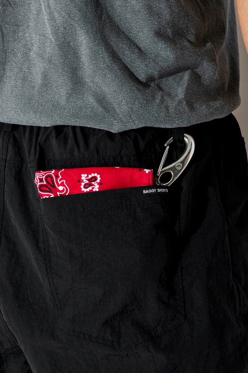 ショーツの時より若干厚みとハリがある通年仕様な、7POCKETで撥水機能があるナイロン素材のバギーパンツです。