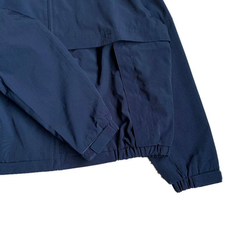 裾にはゴム製の絞られたリブ仕立て、袖口はゴム製のリブに加えてベルクロ留めにて絞る事が出来ます。