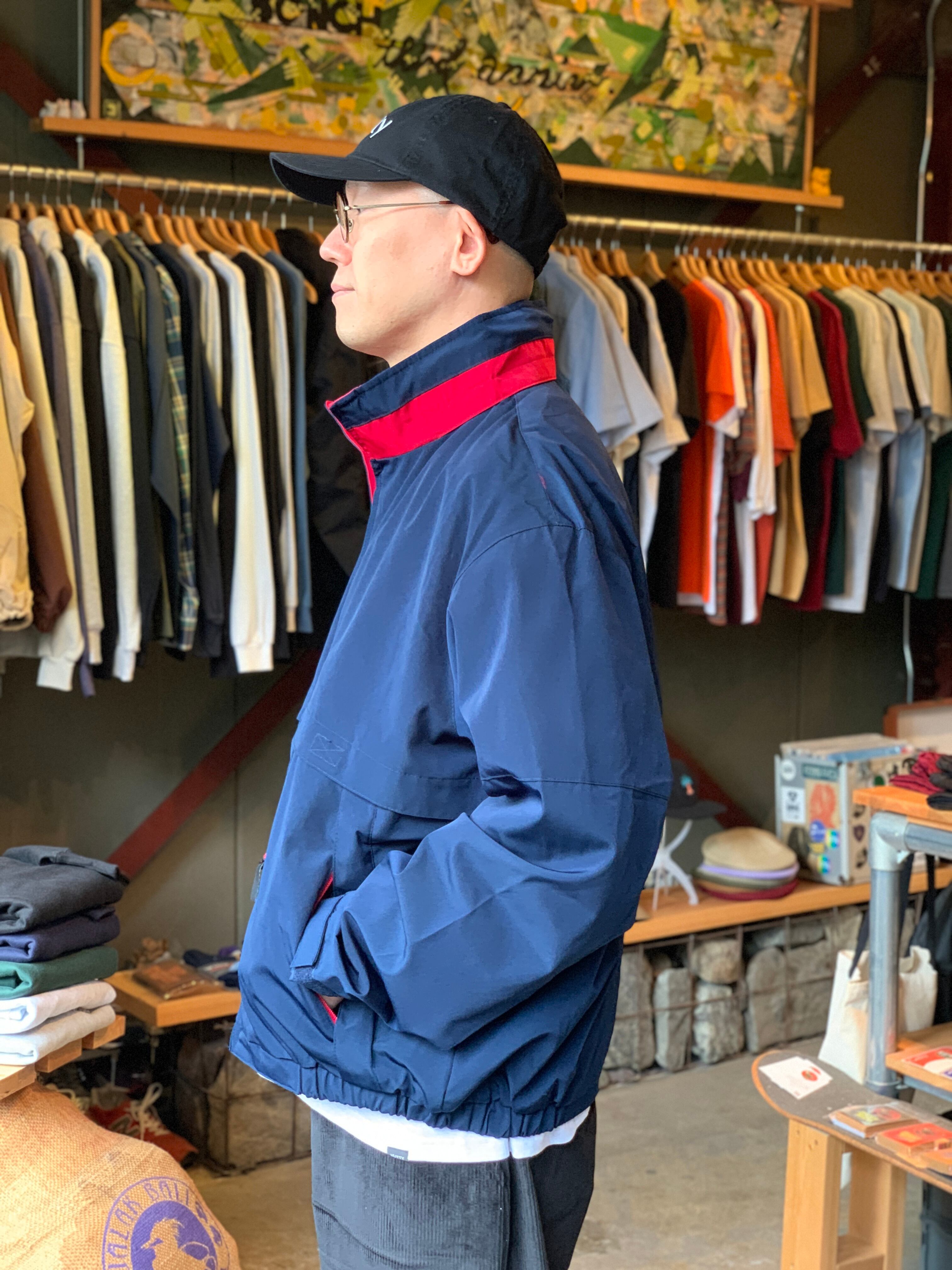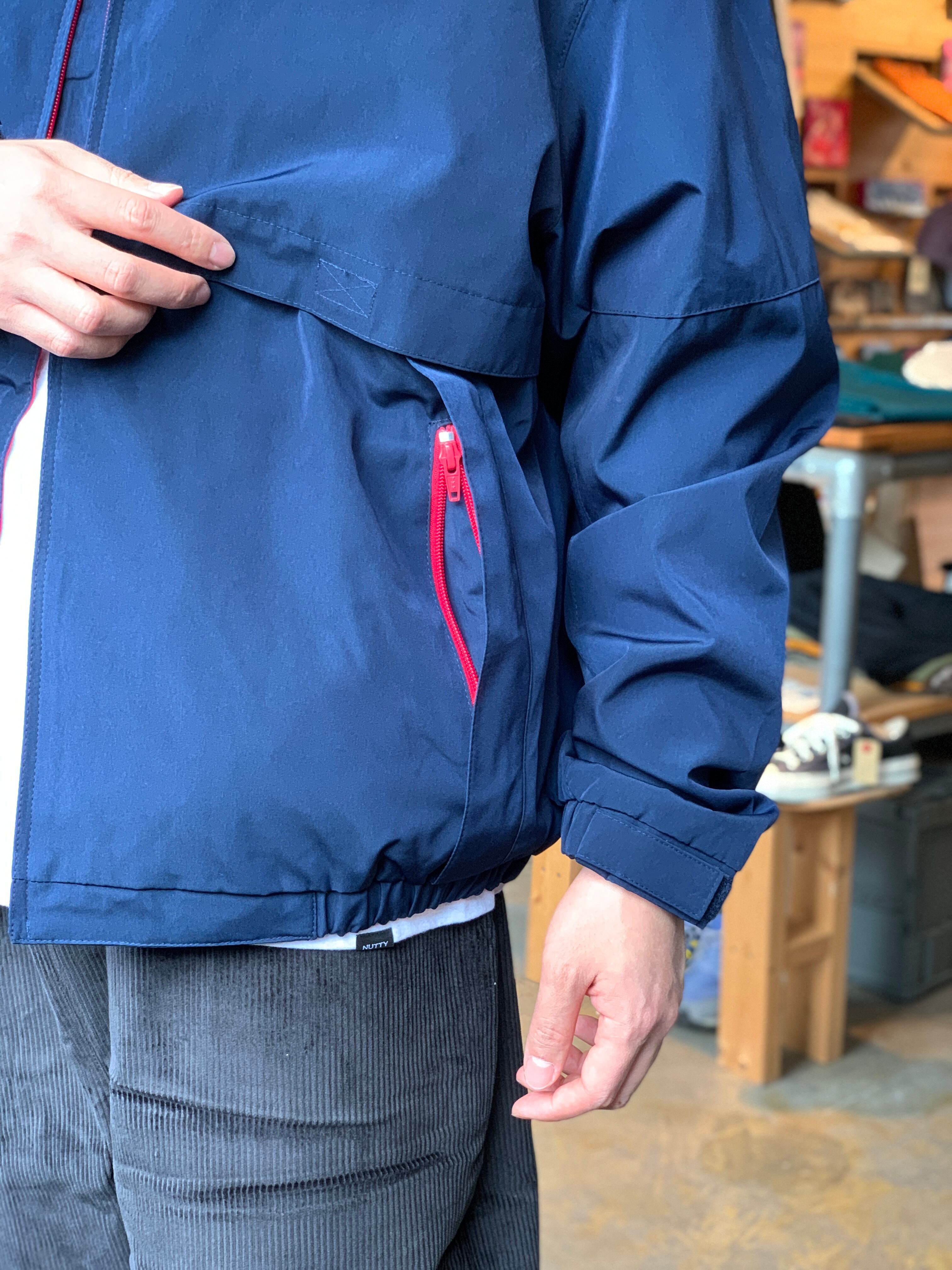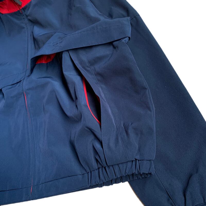 ポリエステルナイロン生地を使った防風性と防水性に優れたナイロンジャケットです。