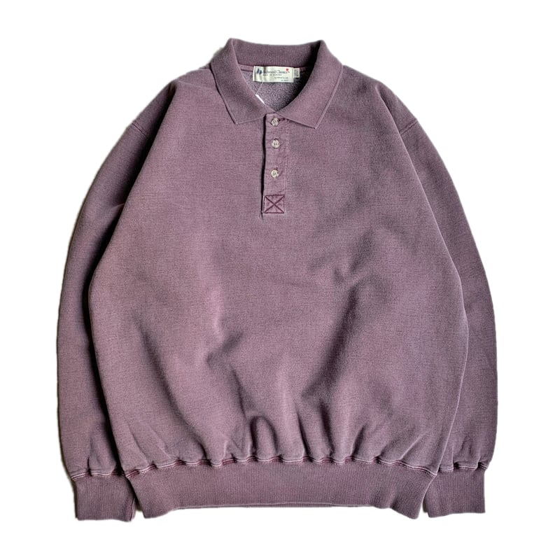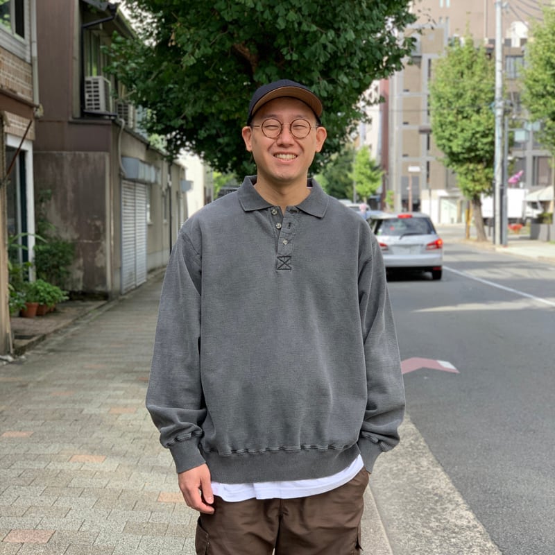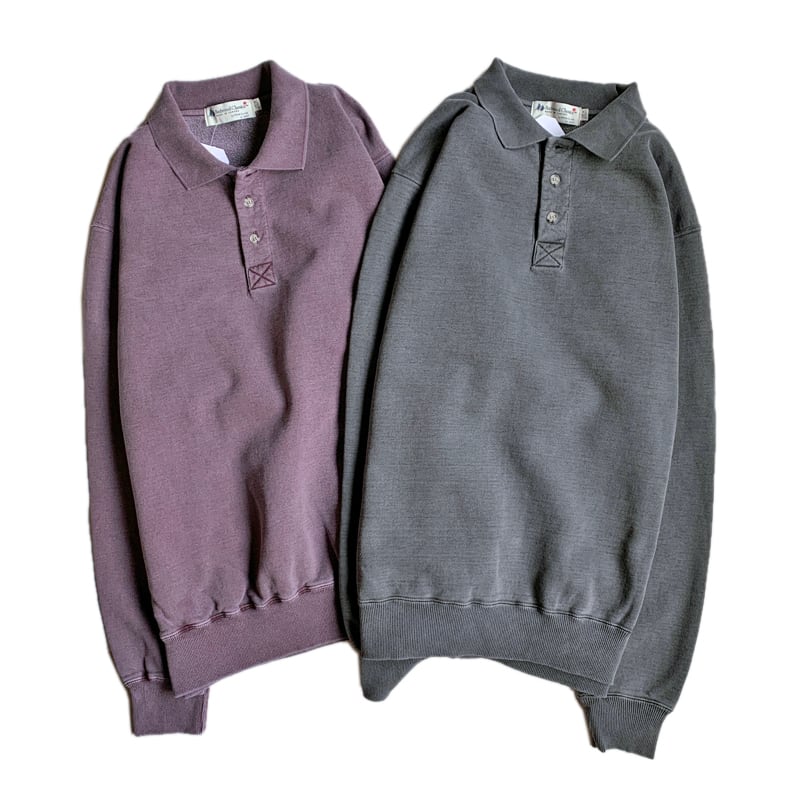 コットン100%で、20ozの厚手で丈夫なボディにピグメント加工を施して、ヴィンテージ風の風合いにしたボディが特徴的なポロスウェット。