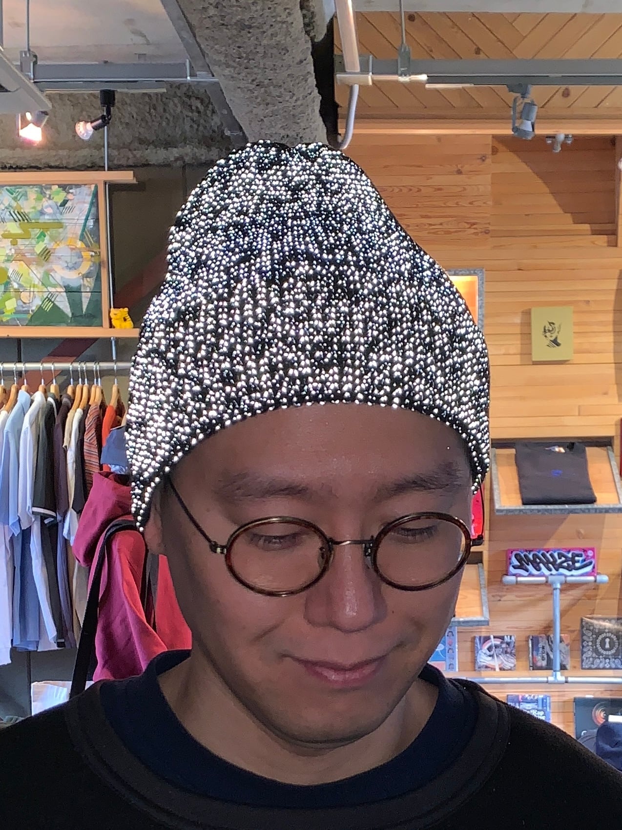 反射素材を織り込んだガシっとした素材感の折り返しビーニーです。