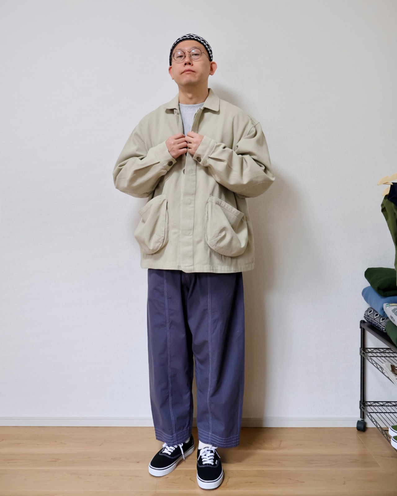 425GSM(約12oz)の100% cotton drillを仕様したカバーオールの様なジャケットです。