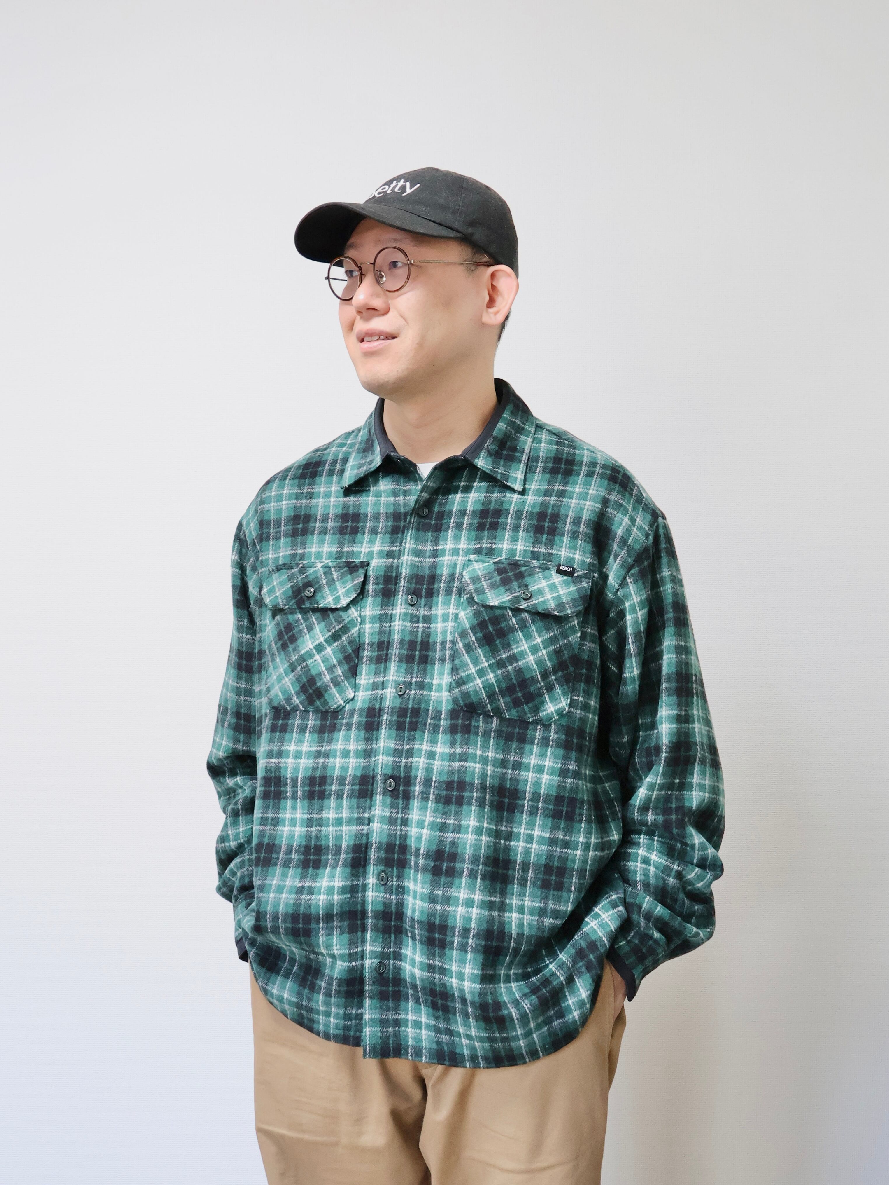 生地選定からパターン、細部のディテールに至るまで一から設計した、BENCHオリジナルのフランネルシャツです。