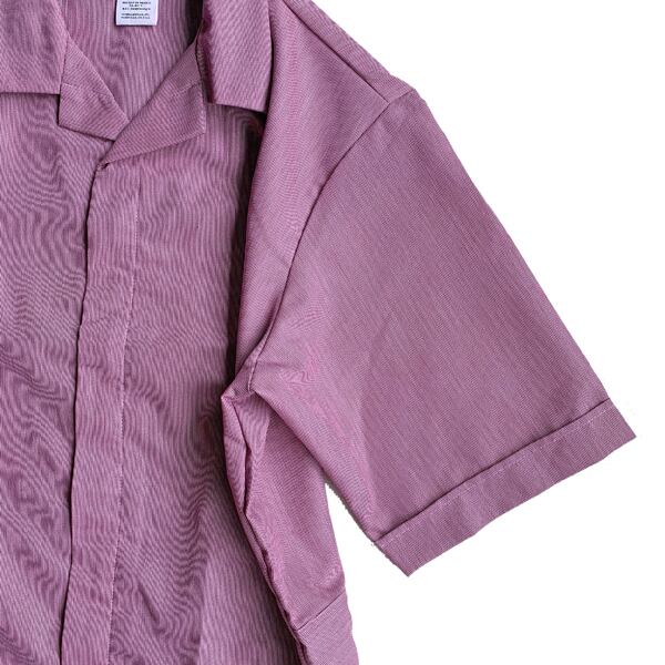 開襟(オープンカラー)で身頃がゆったりとして袖も長めなボックス型の作りが良い感じです。