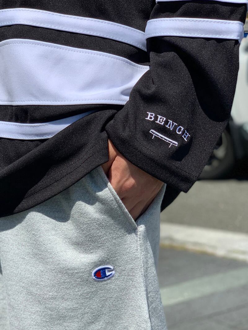 ブランクボディが生地感もシルエットも良いので、シンプルに左袖にBENCHの刺繍ロゴと左裾に織ラベルパッチ付きにしているのがポイントになってます。