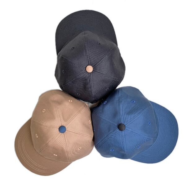ベーシックなコットンツイル生地に裏地を重ねており、天ボタンとツバ裏はカラーを切替えたデザインになっています。