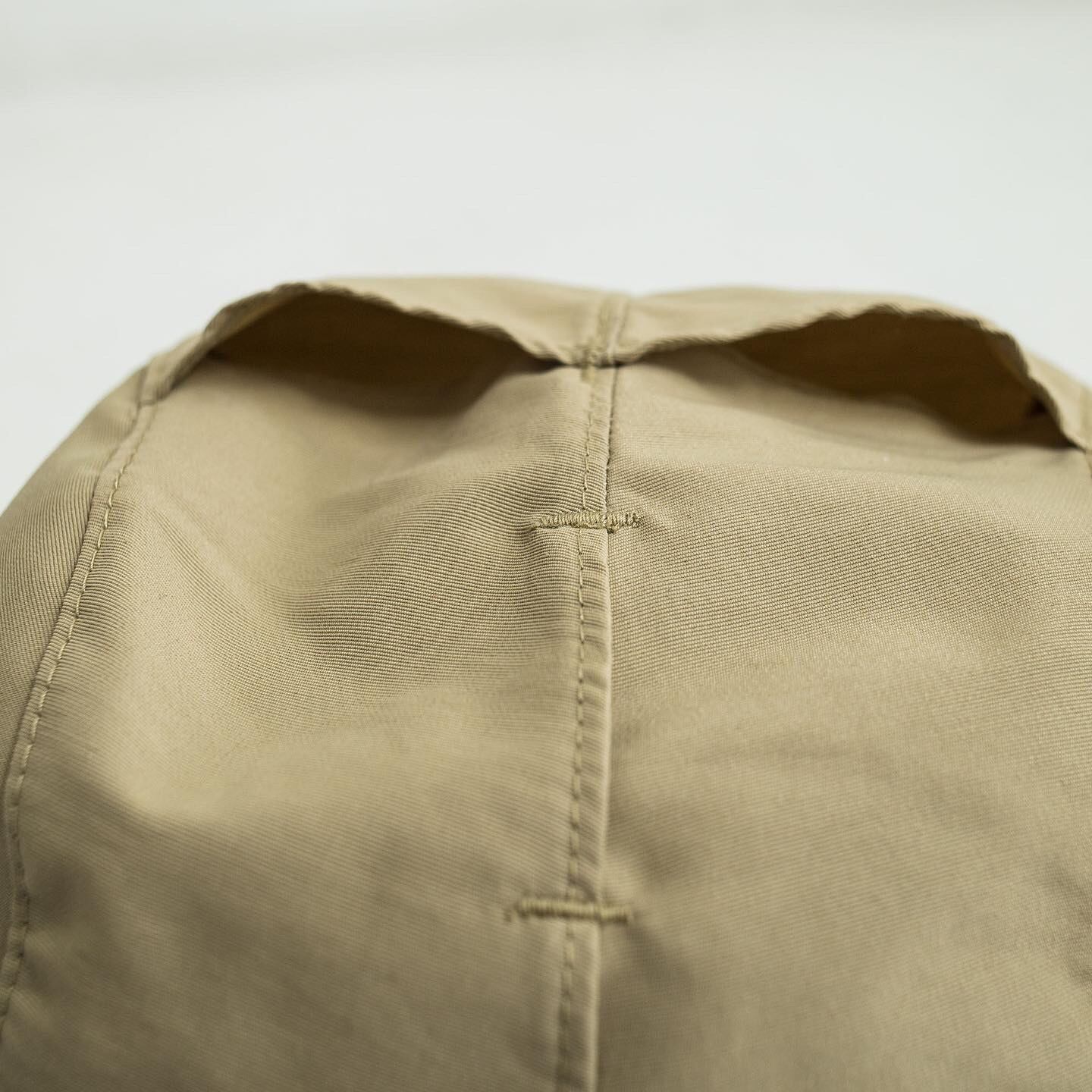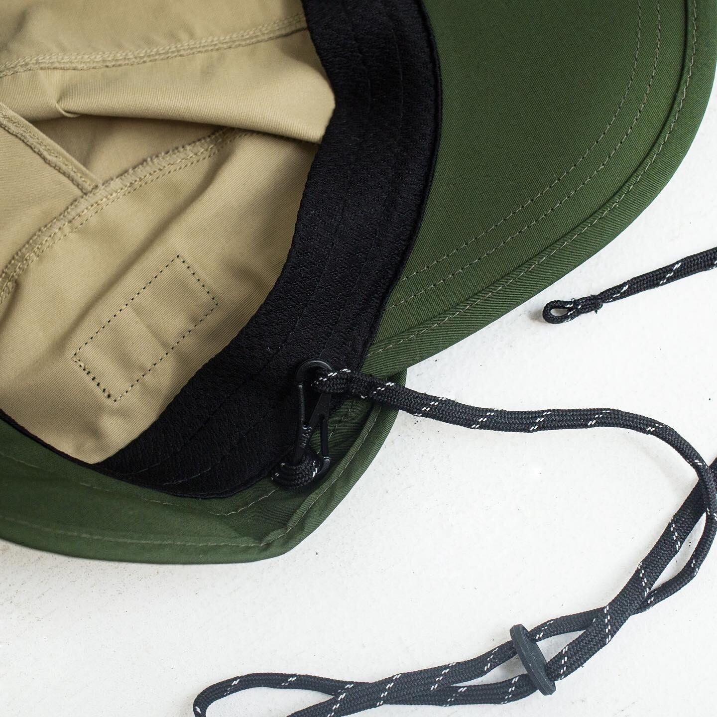 今回も通気性を高めるベンチレーション、小物が収容出来るスタッシュポケットに加えツバ部分の切り返し等細かいディテールに拘りました。