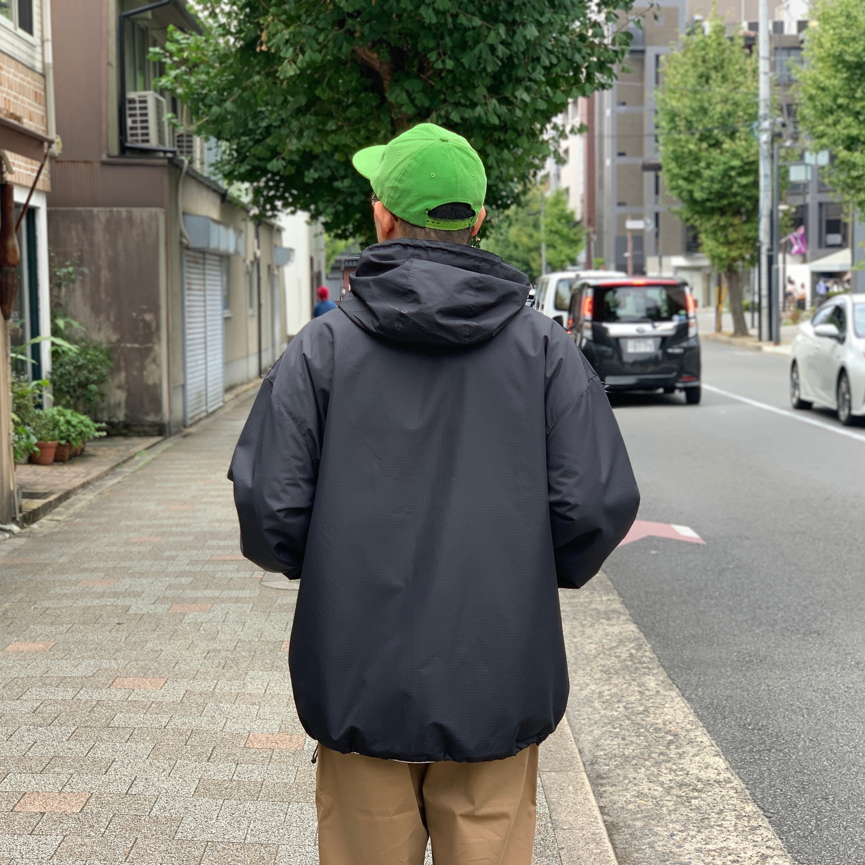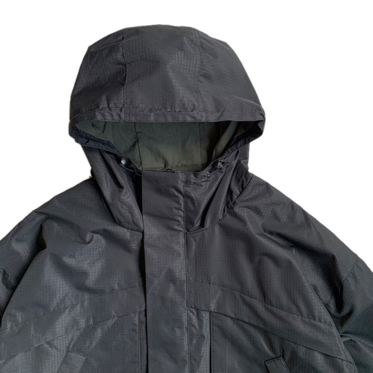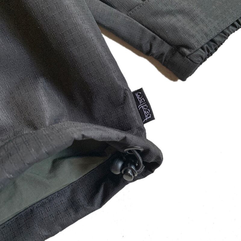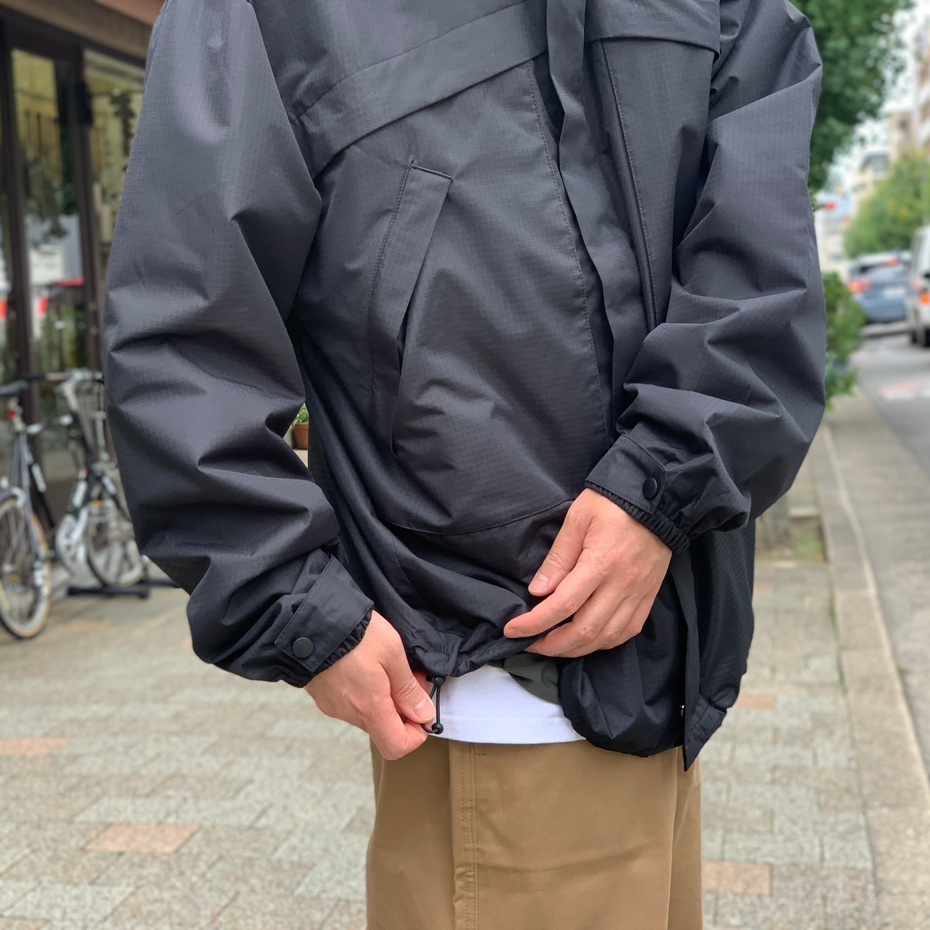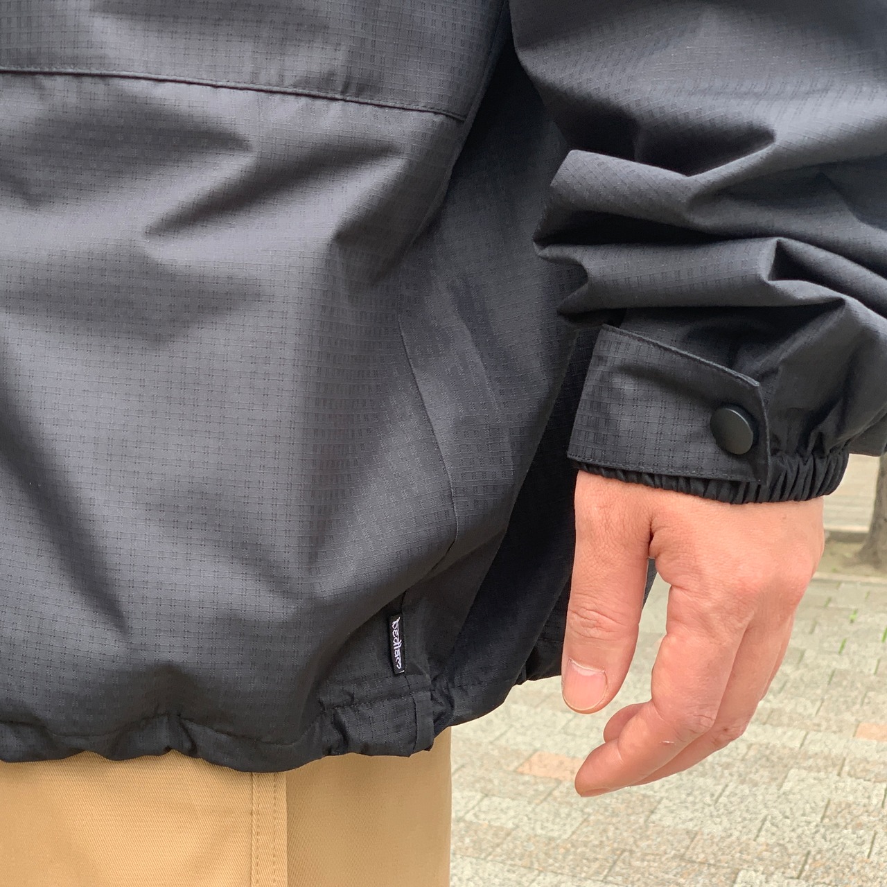 袖にはボタンによるアジャスター、フードと裾にはドローコードが付いておりシルエットの調整に役立ちます。