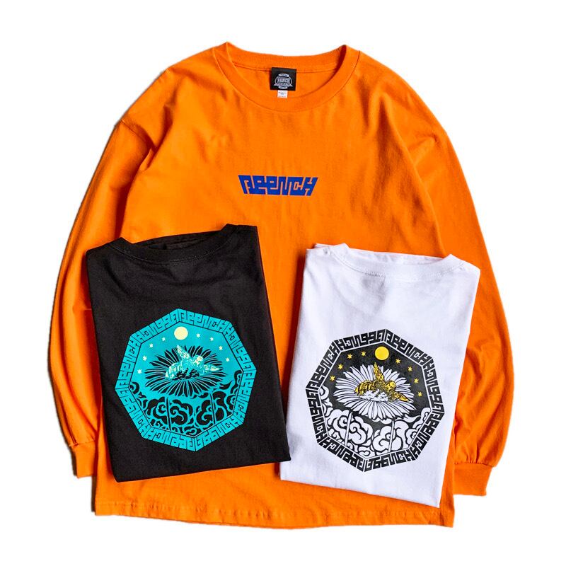 フロント中央にはバックデザインにも使用されているオリジナルフォントのBENCHロゴ、バックには中LAさんによる描き下ろしのグラフィックデザインがプリントされております。