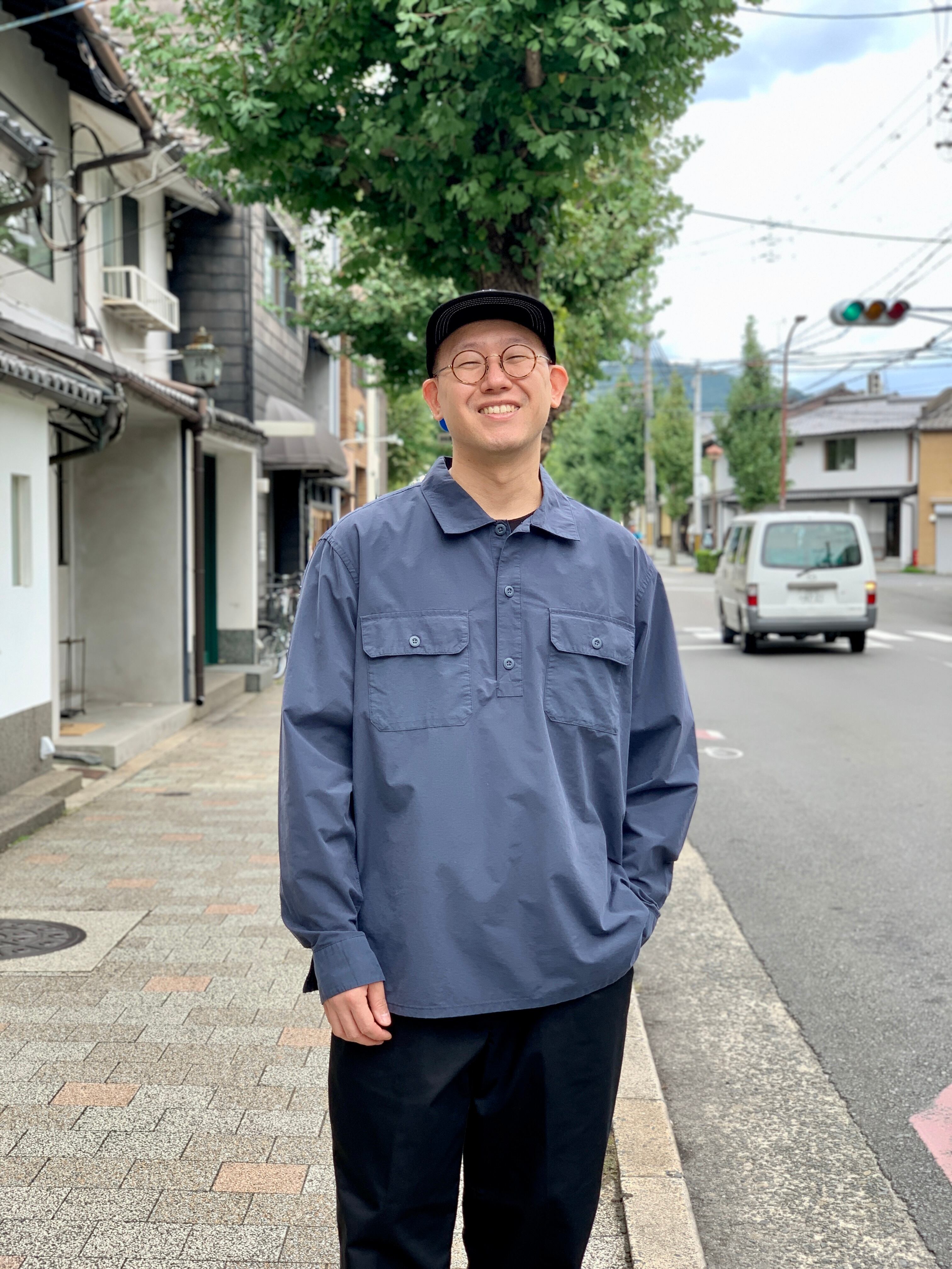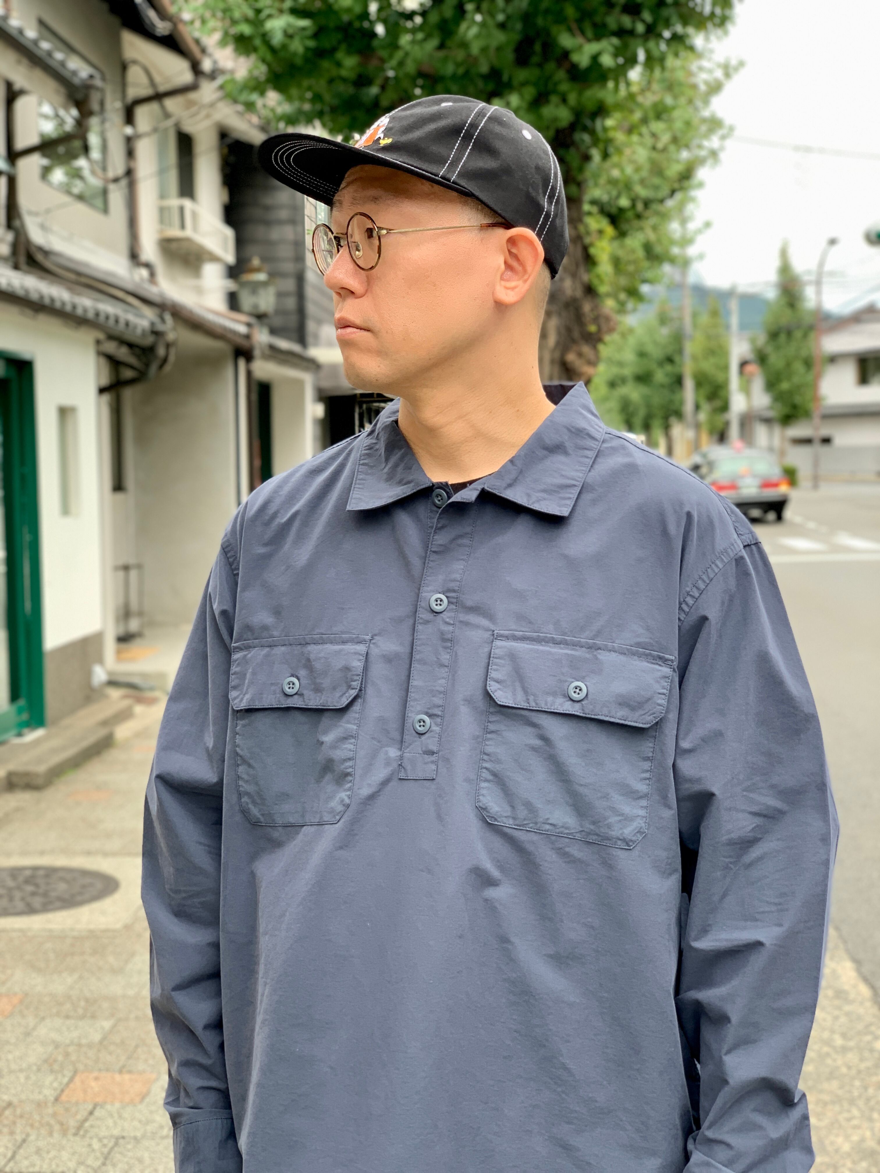 コットン70%ナイロン30%のポプリン生地で、着心地が良く耐久性が高いプルオーバーシャツです。