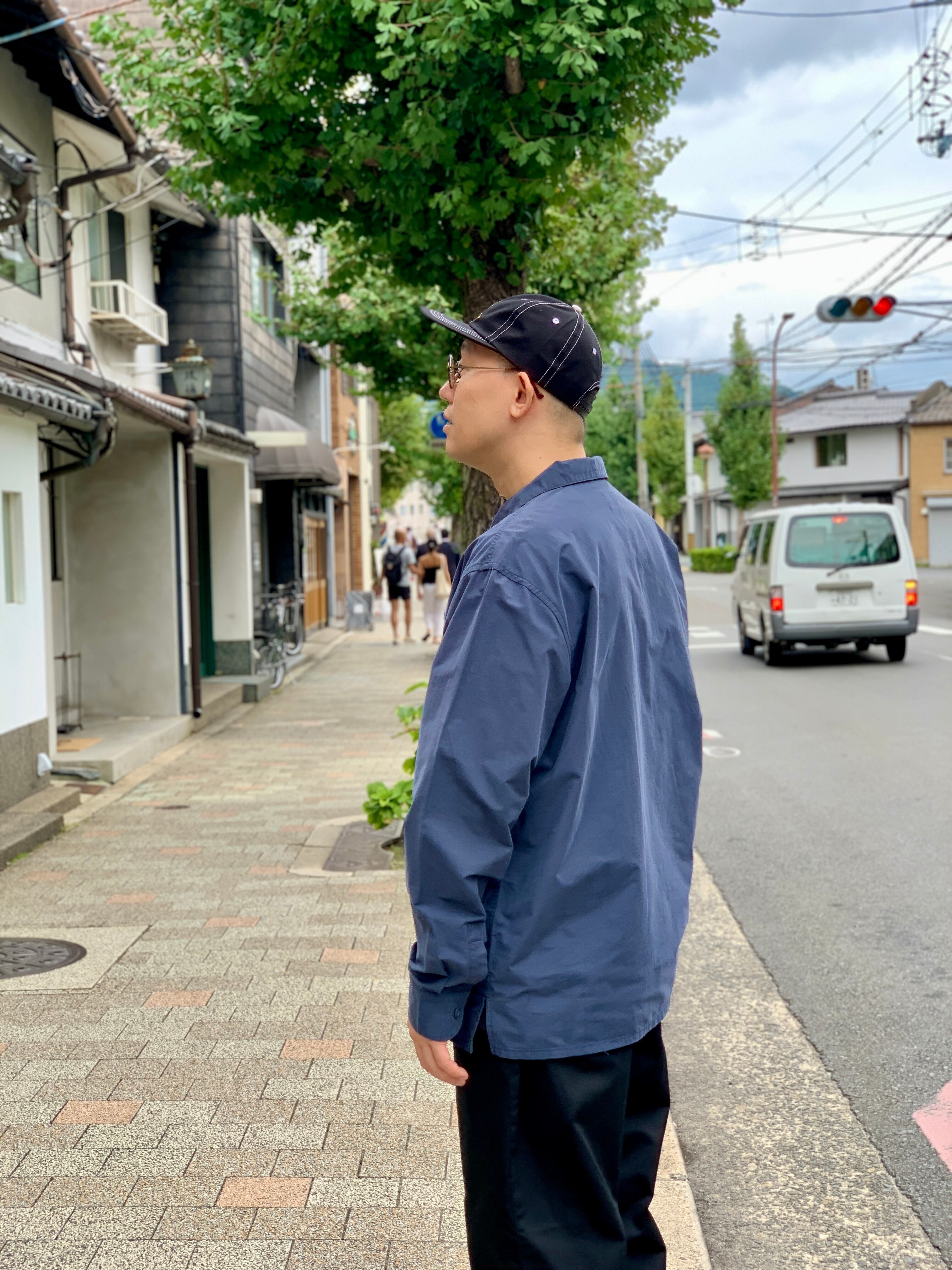ハーフボタンで胸元にはフラップ付きポケット、裾はスクエアボトムになっています