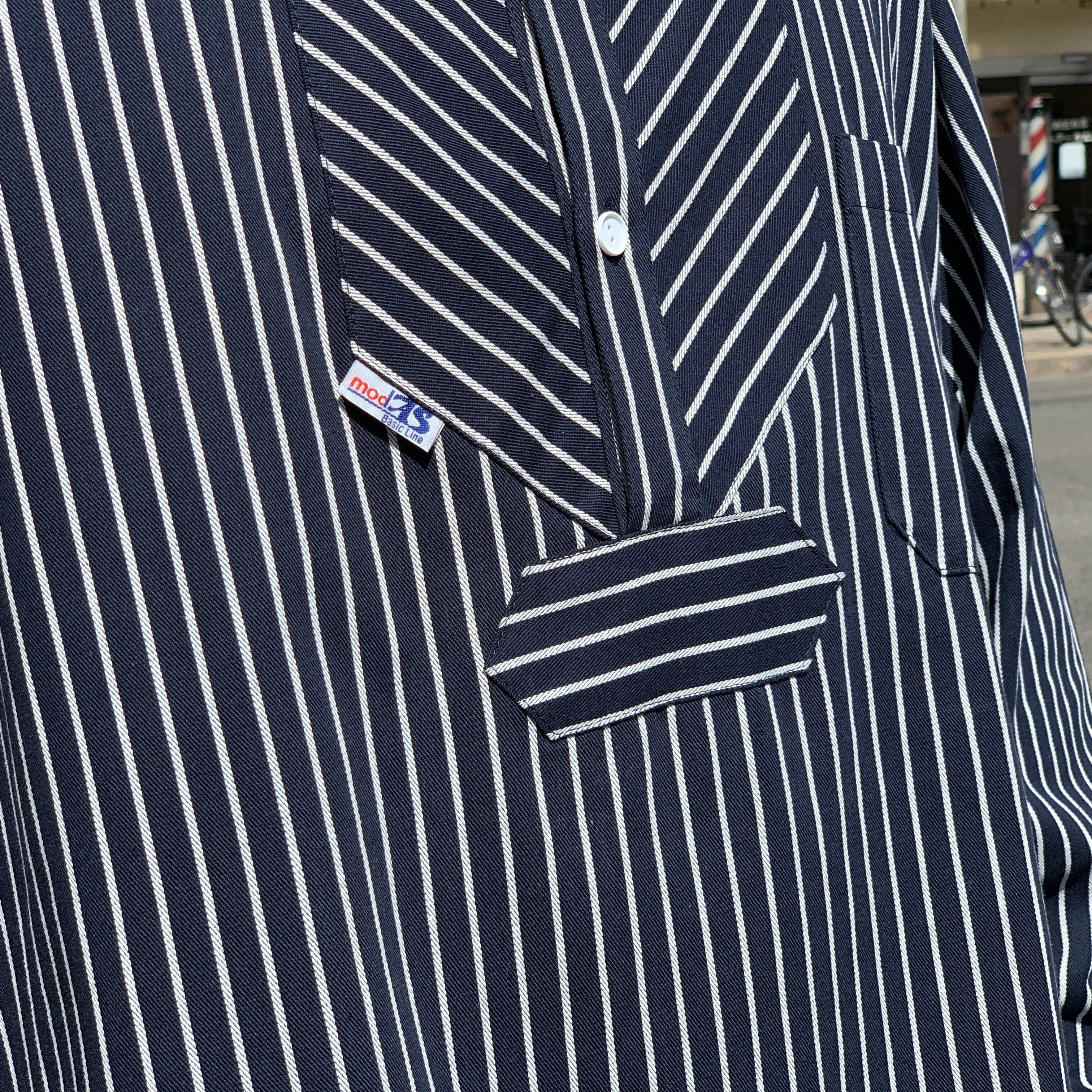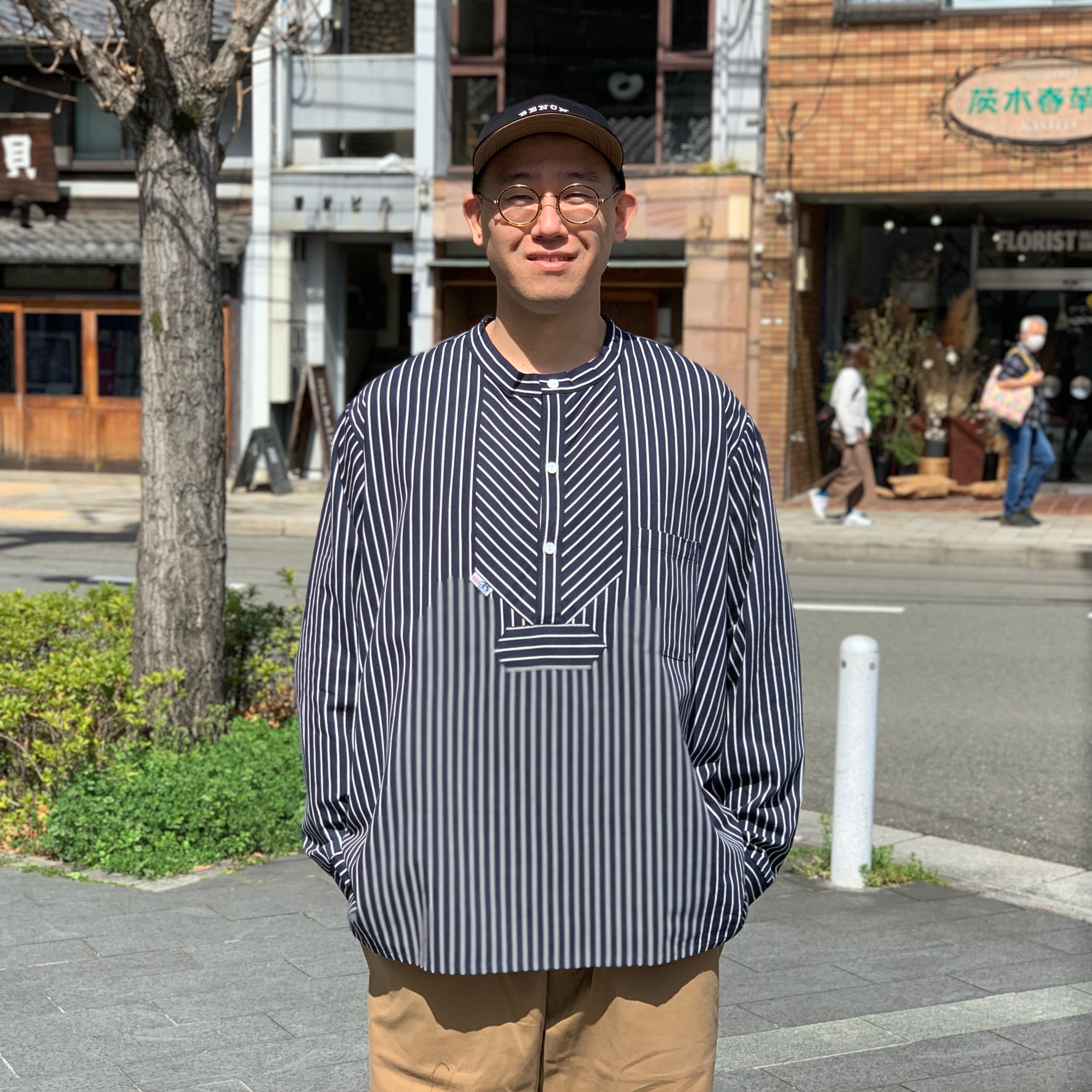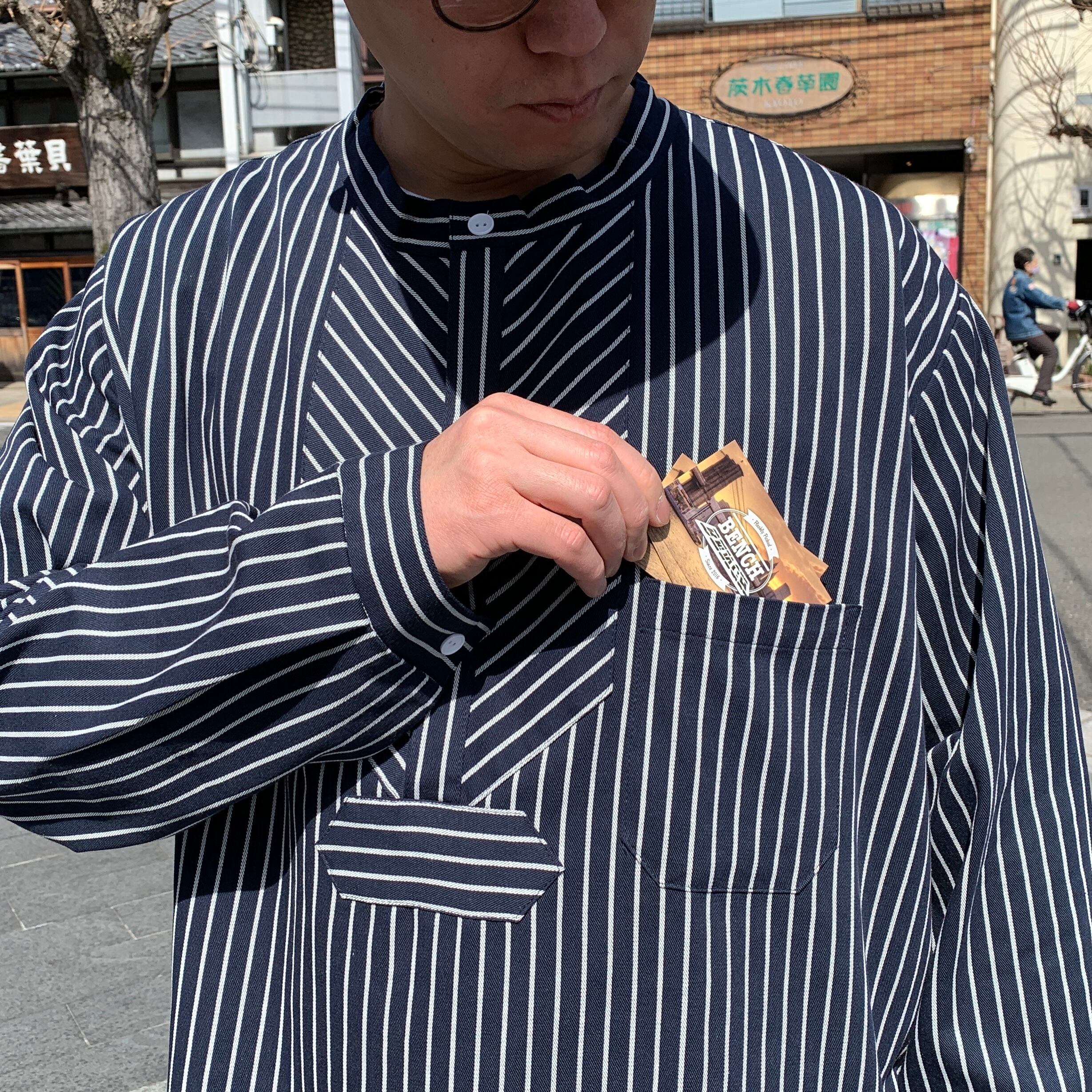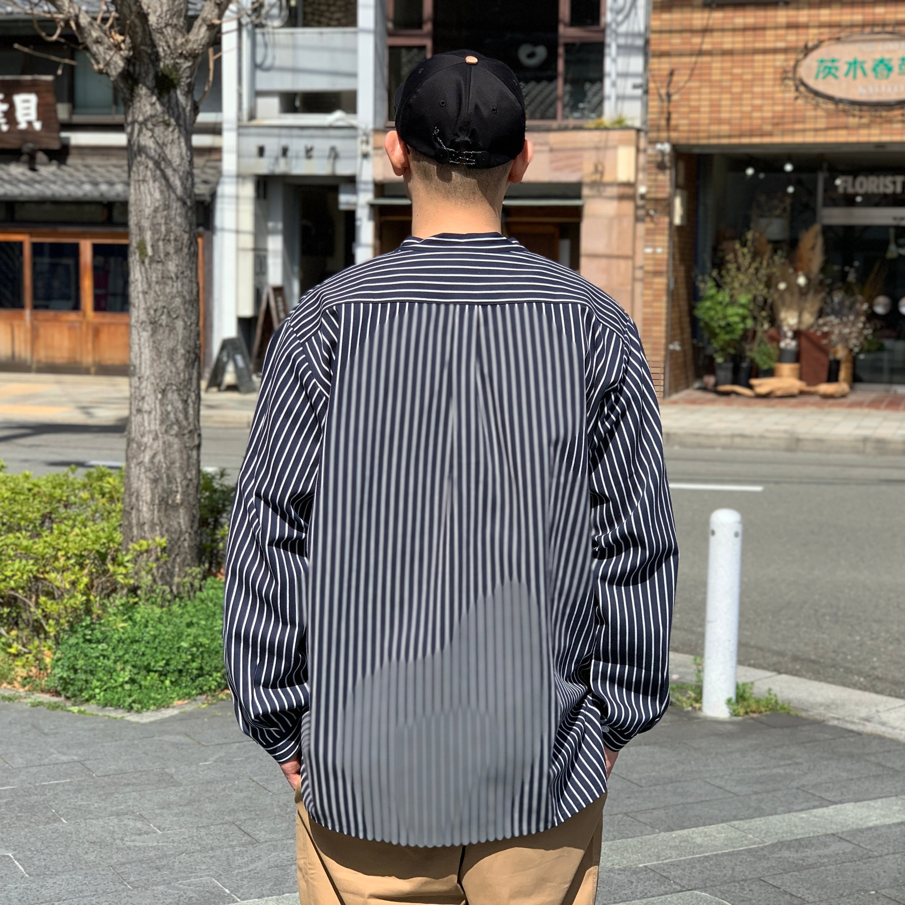 modAS / No collar Fisherman Pocket LS Shirt (Wide stripe)