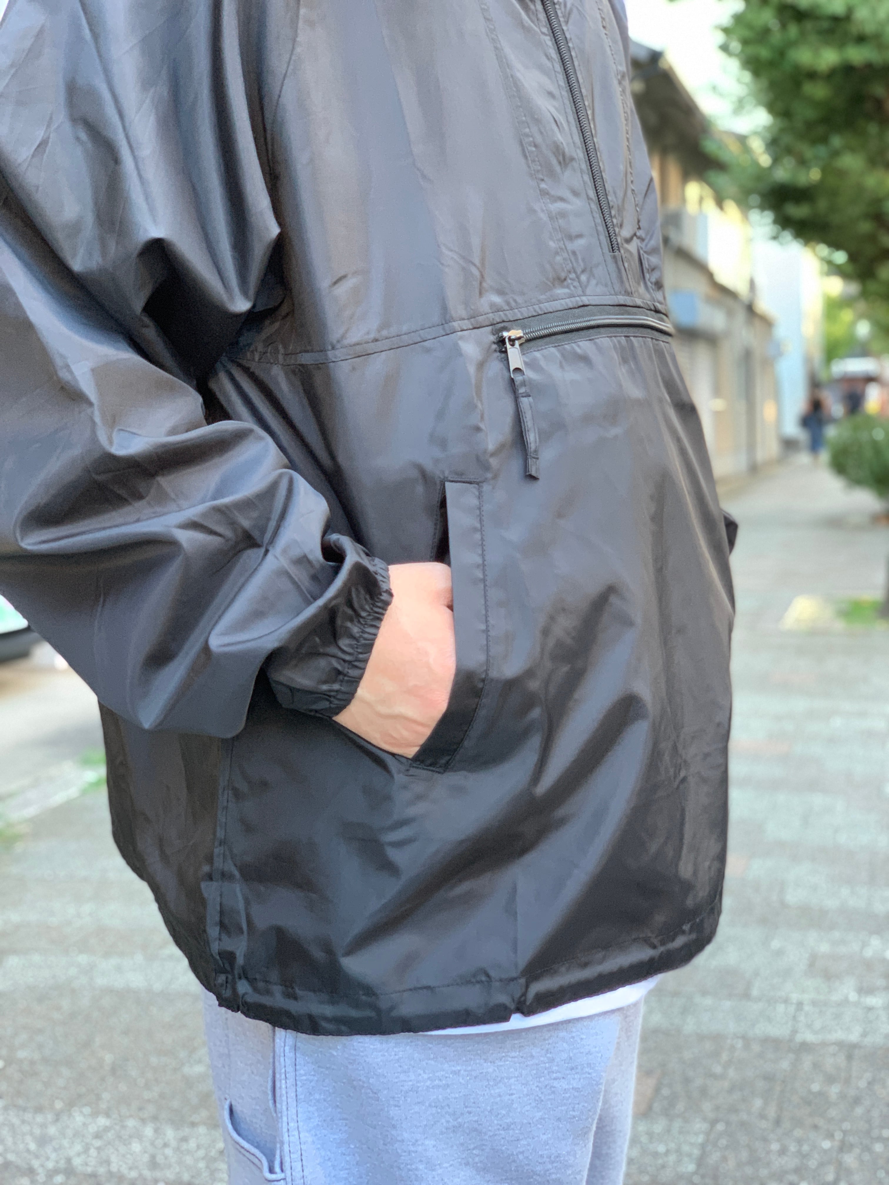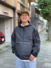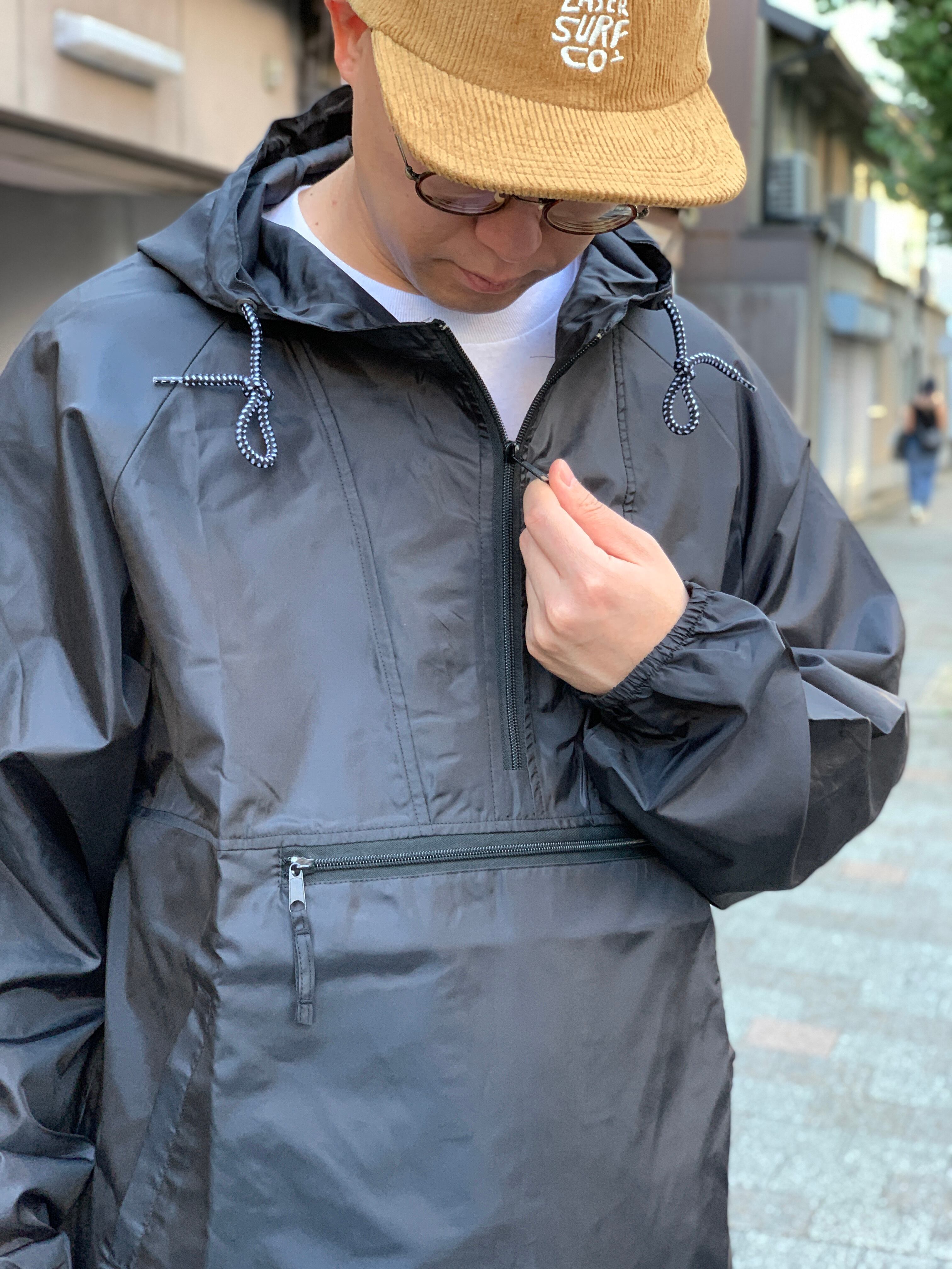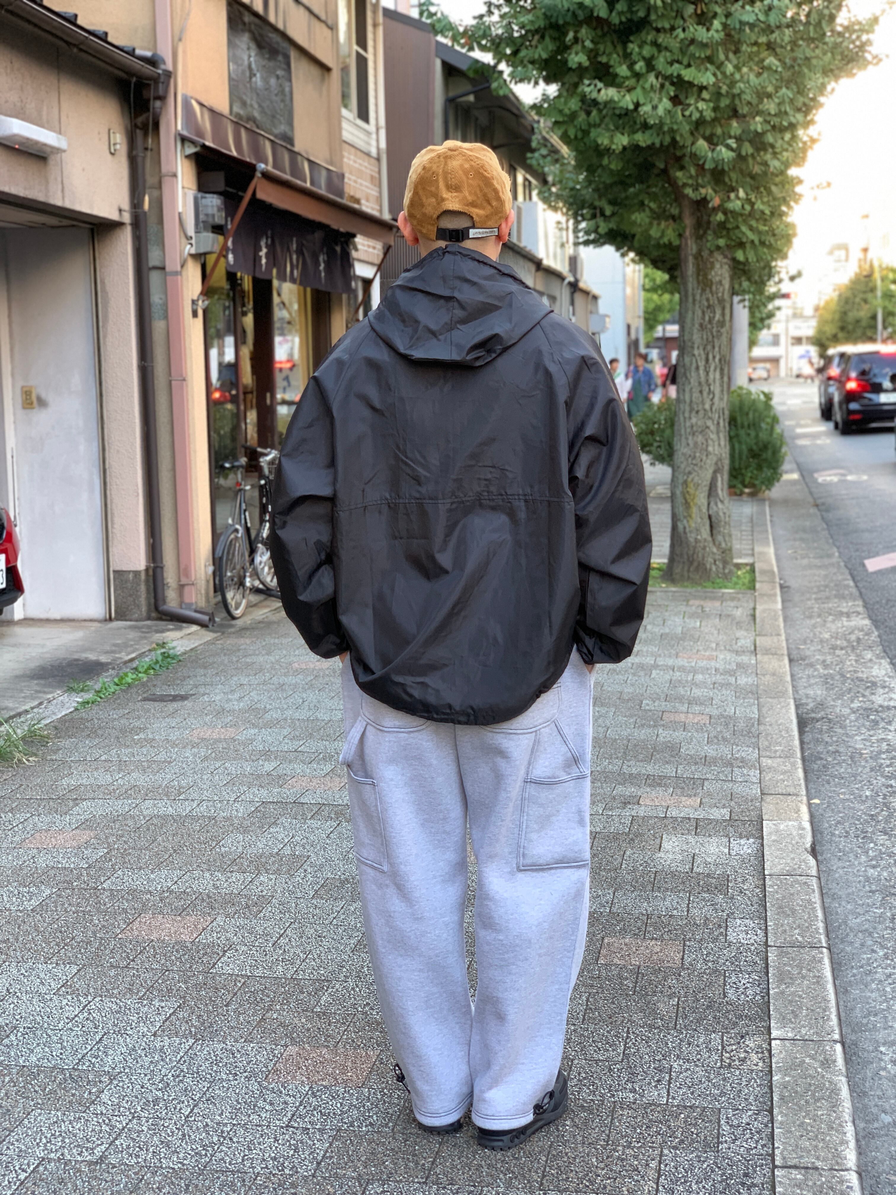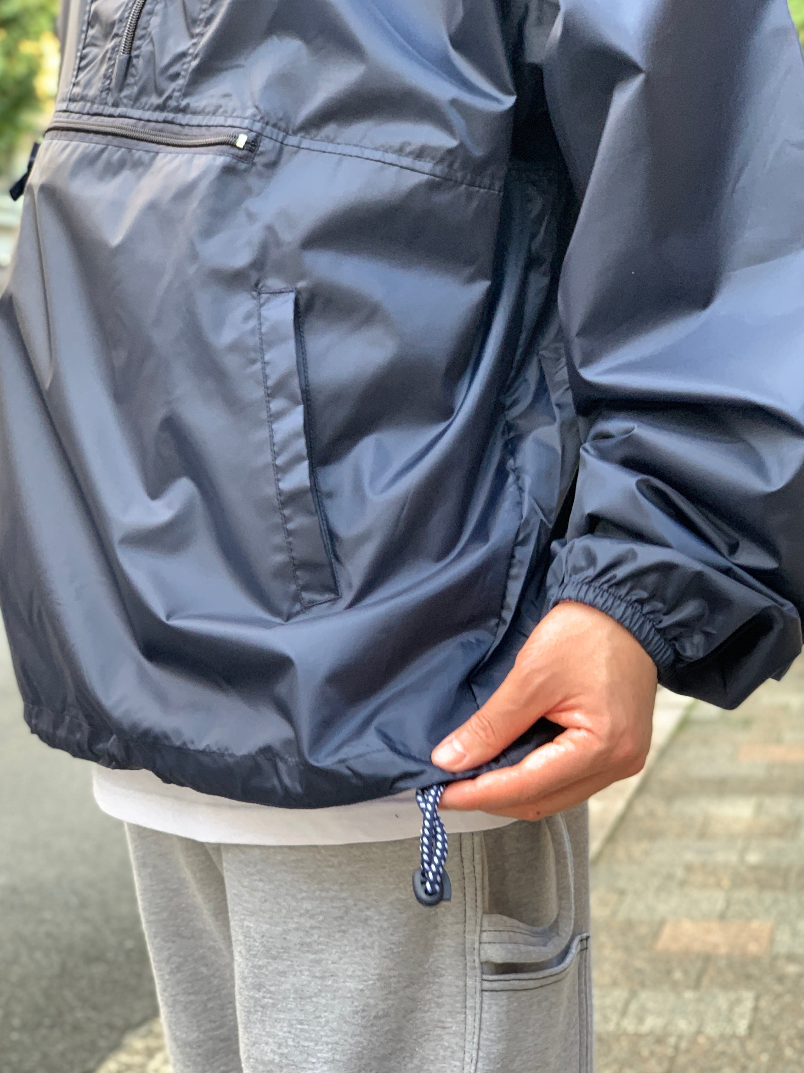 Wind and Water resistant.という訳で耐水性があるのも有難いし、身頃のゆったりとしたリラックスフィットなので雲行きの怪しい時はざっくり羽織るのがオススメ。