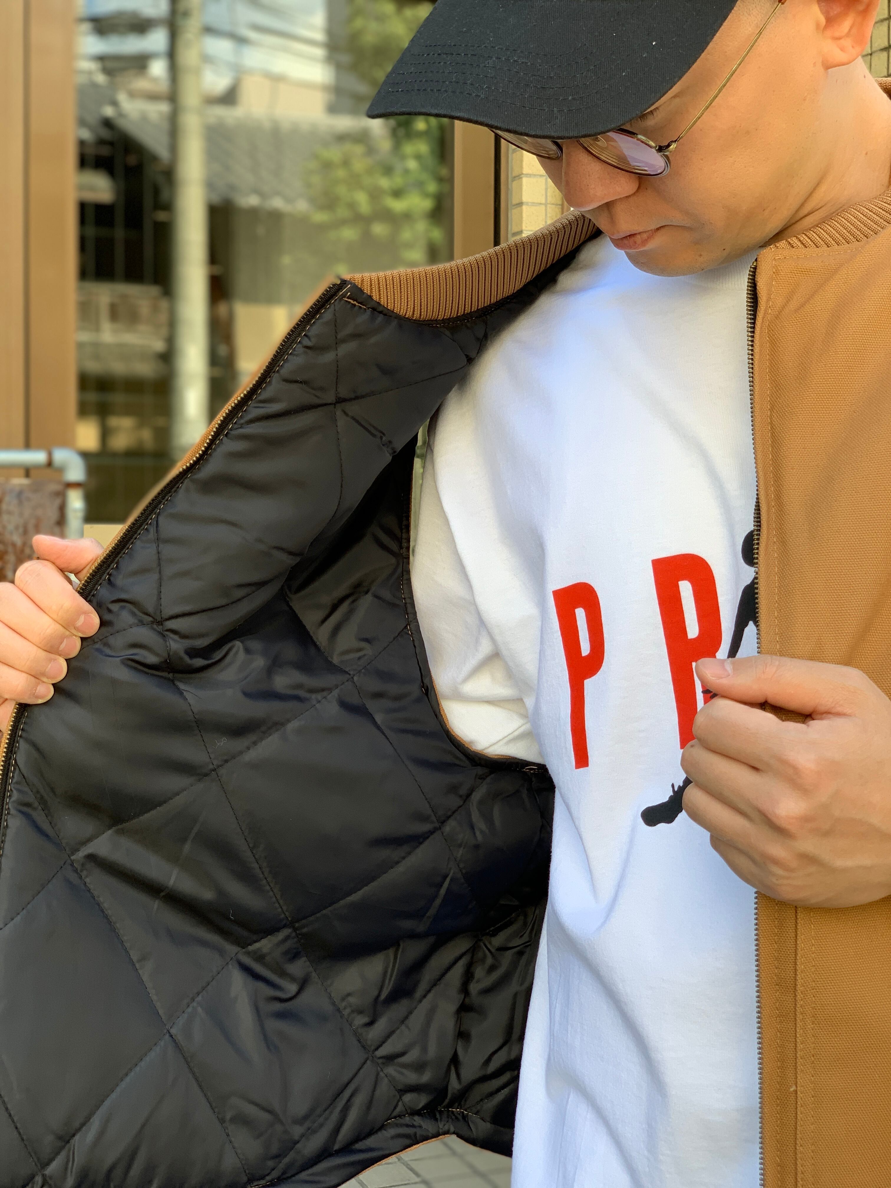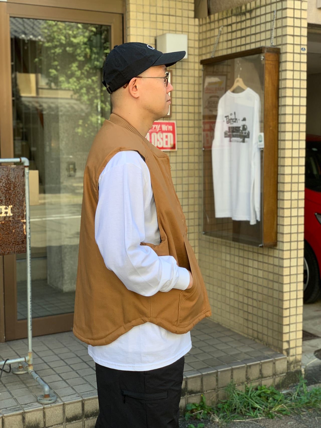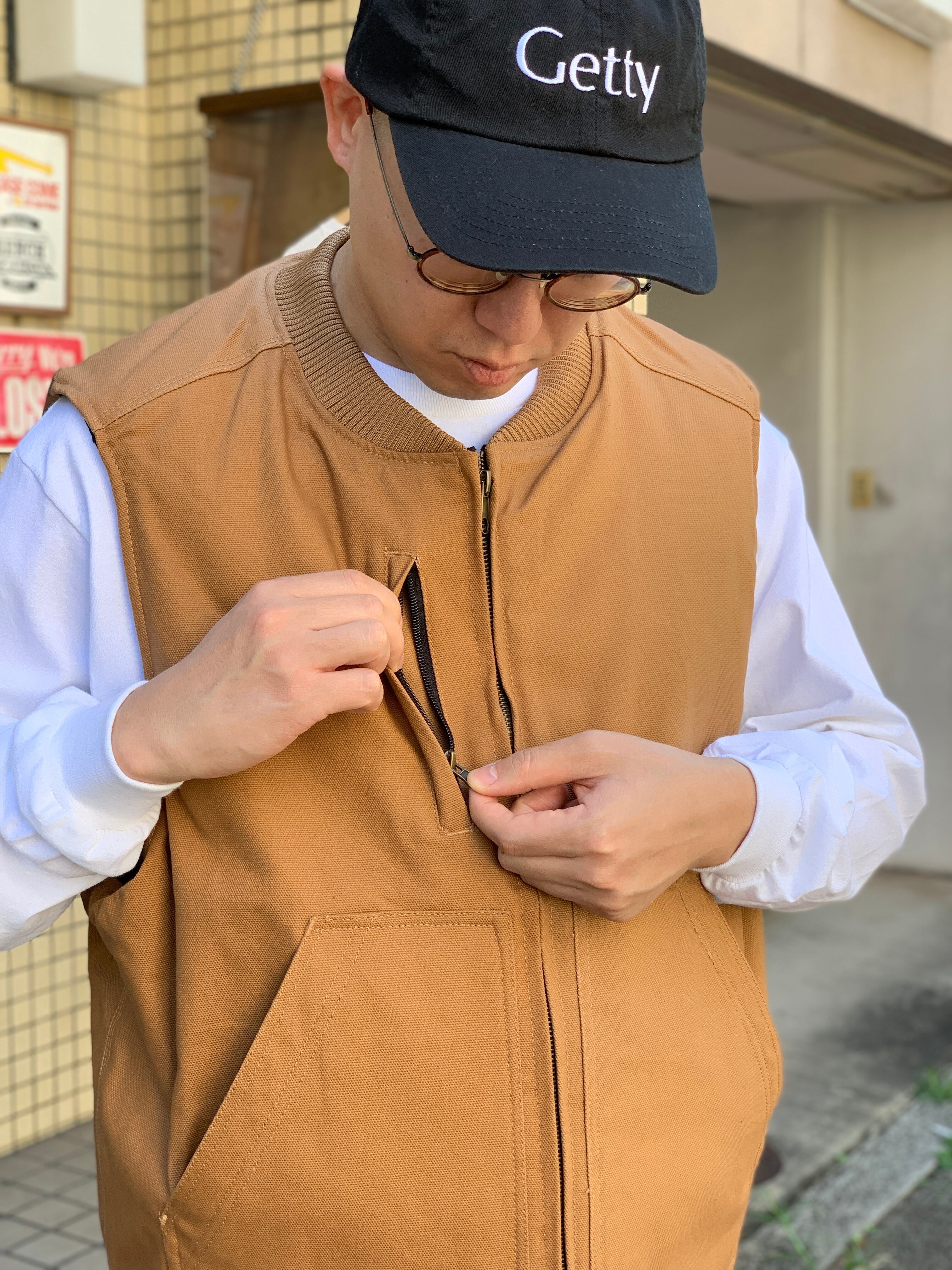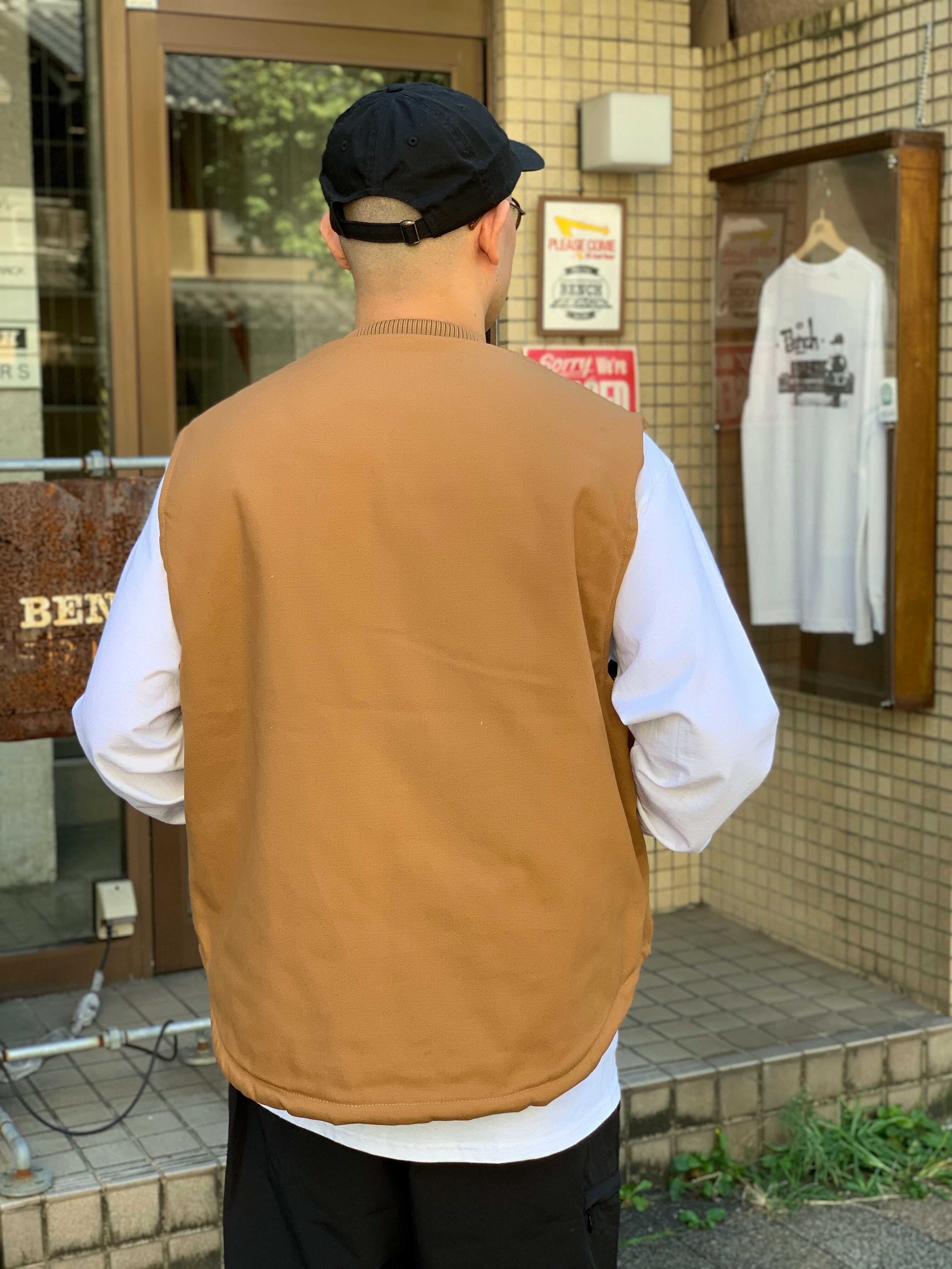 ワークウェアのベストによく有る極端な丈短じゃないので着やすいし、アームホールが広くてスウェット生地のアイテムと合わせやすいと思います。