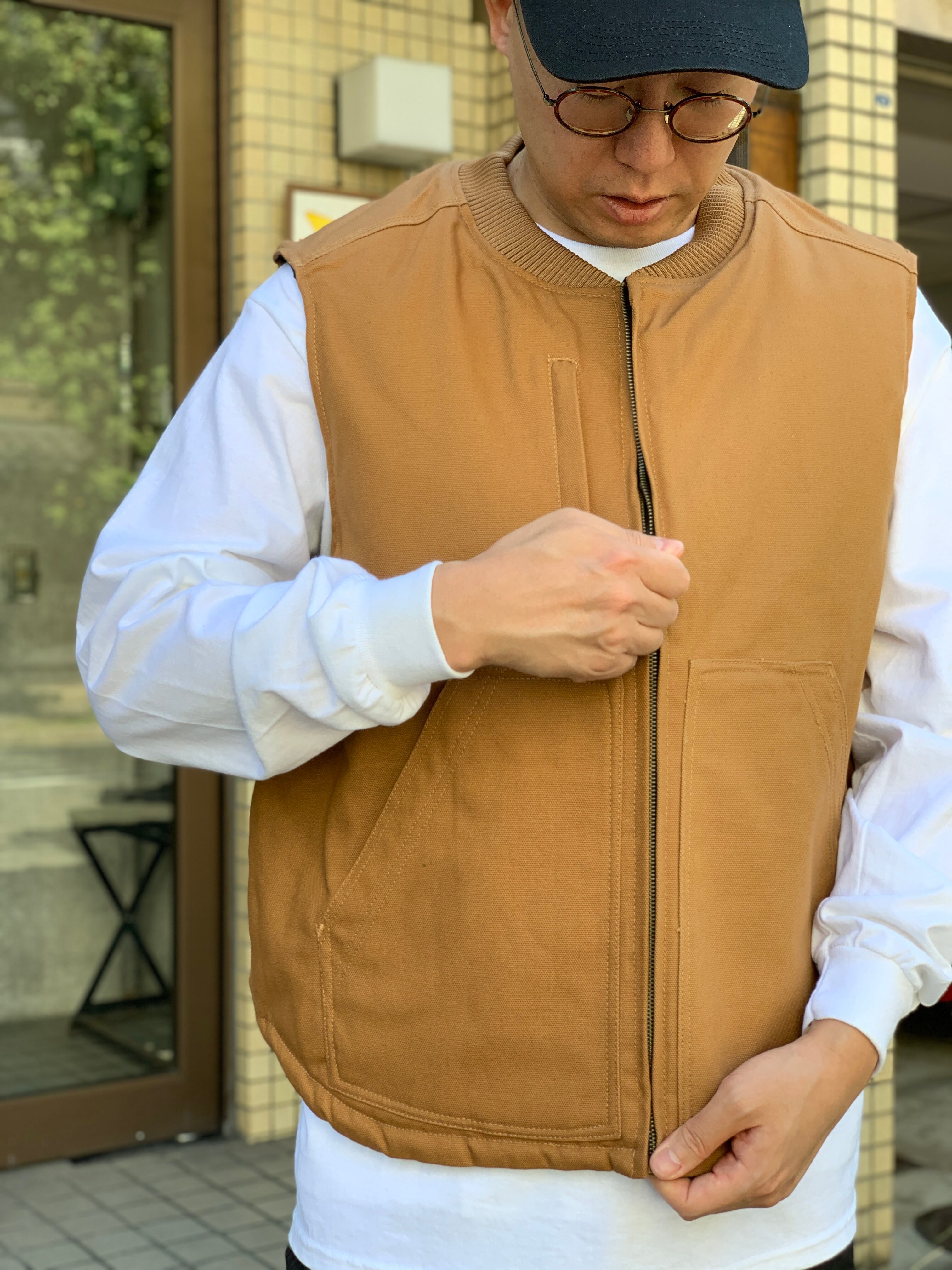 ペンキ屋さん向けのワークウェアブランドのキルティングライナーで中綿入りのトラディショナルなダック生地のベストです。