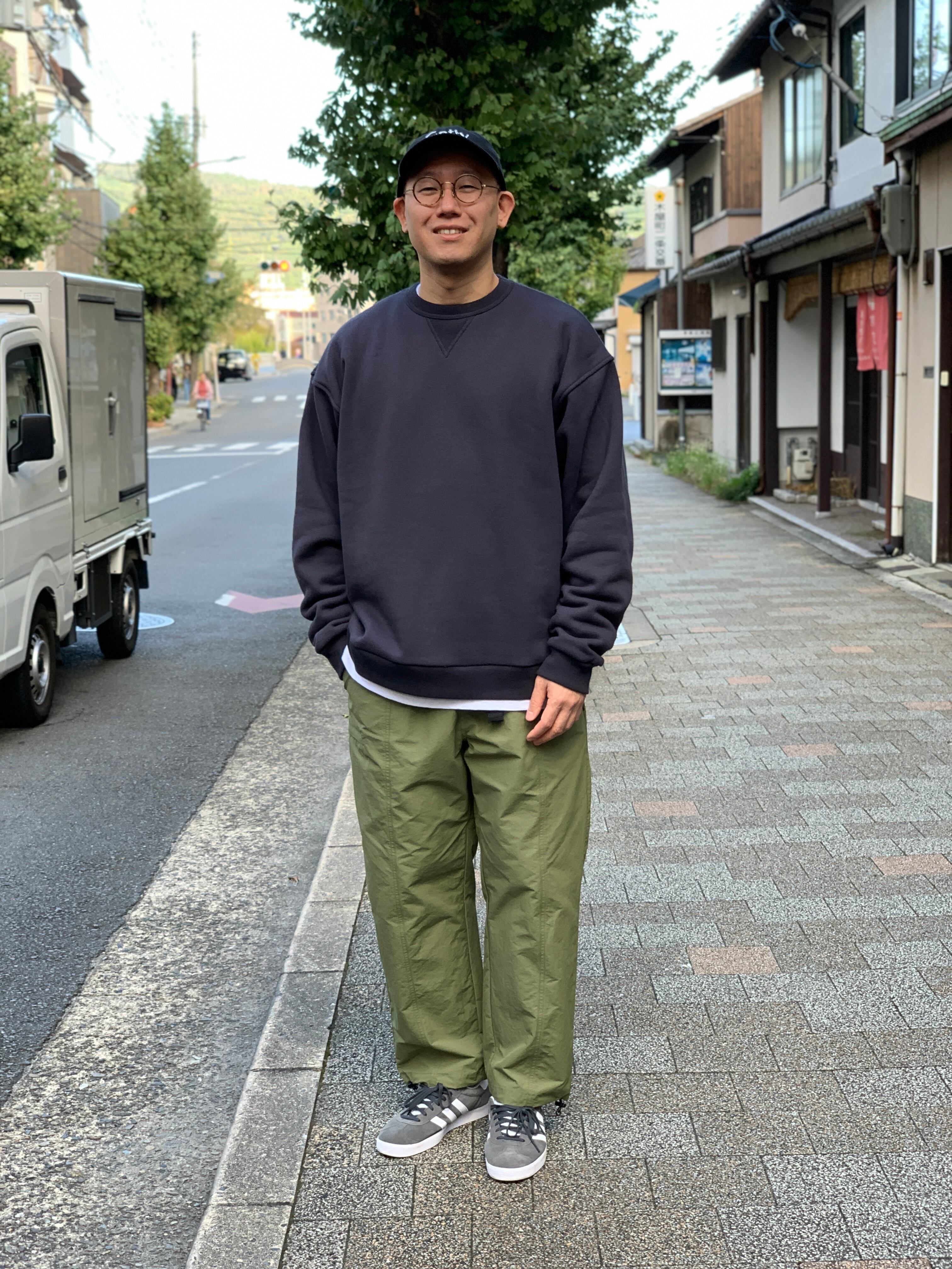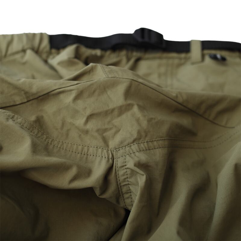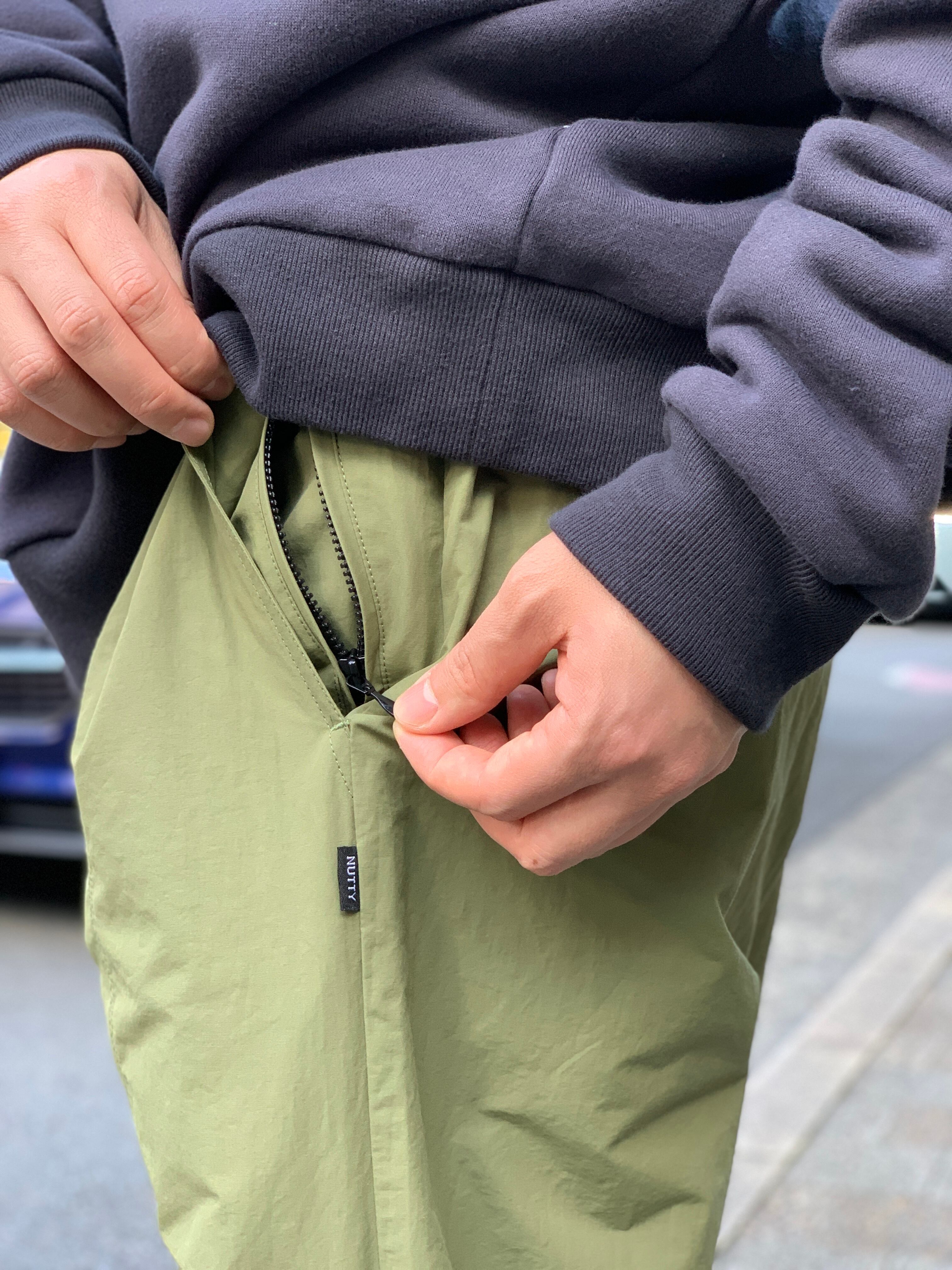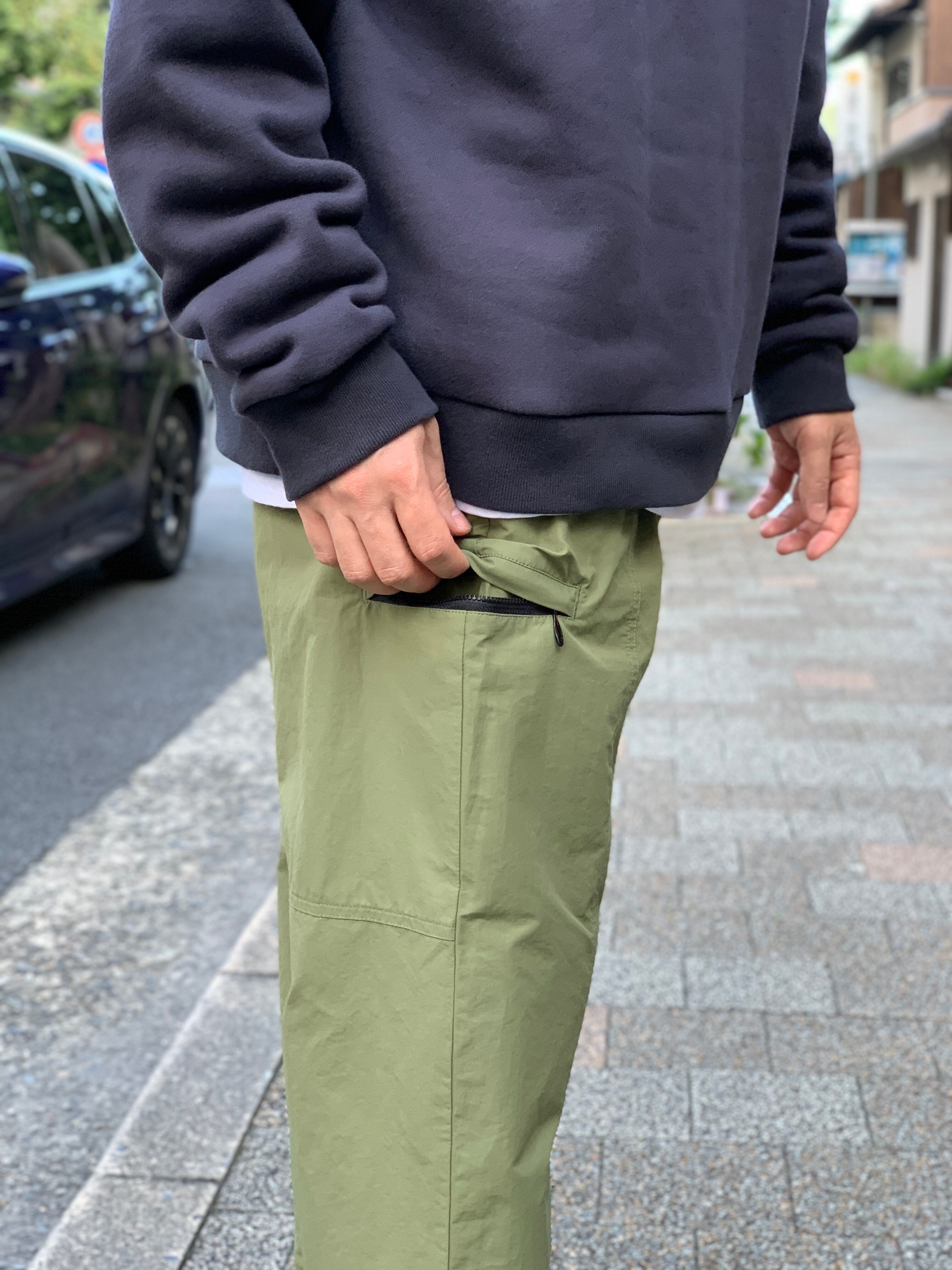 腰回りはたっぷりと余裕を持たせ、裾口にかけてテーパードを入れたシルエットに動きやすい機能性に加えイージーパンツのリラックス感をプラス。