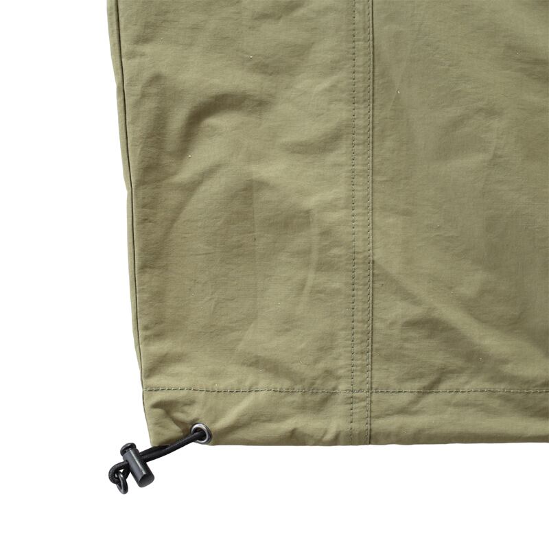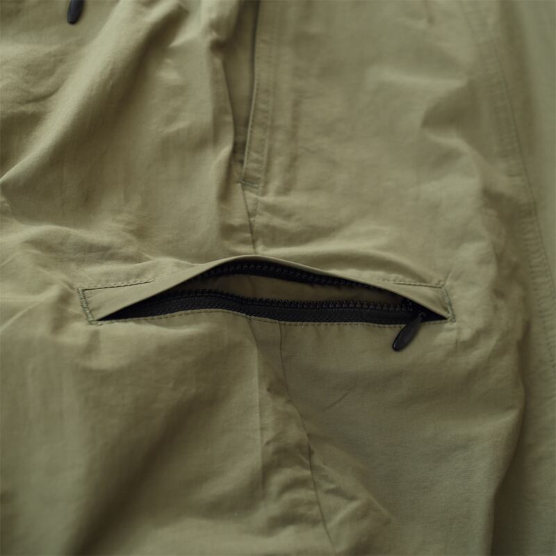裾部分には自分好みにシルエットを調整出来るドローコード付きで、フロントポケットは両サイド共に通常部分に加え2重構造、ジップ付きなのでカード類や小銭などを収納するのにも最適です。