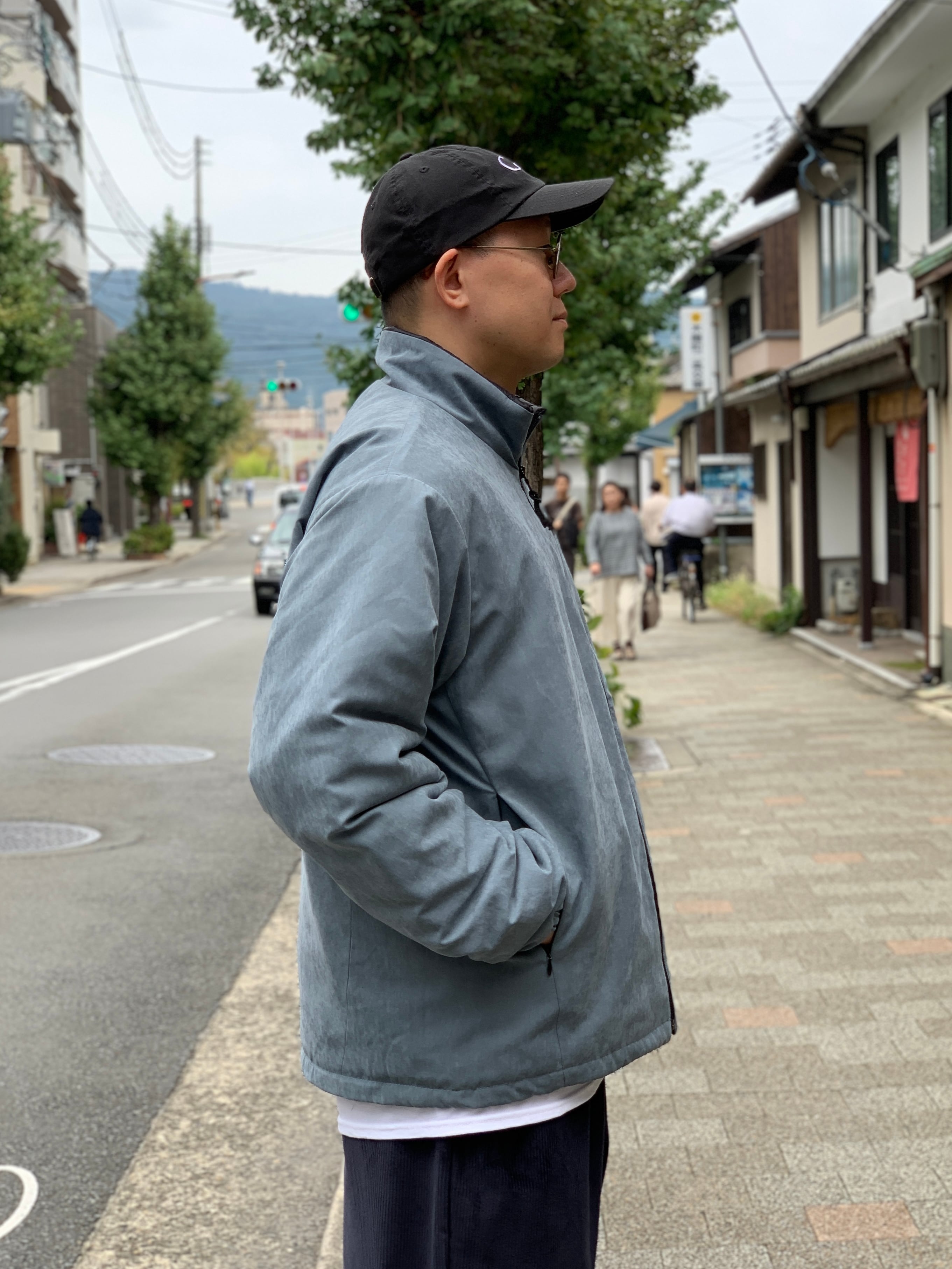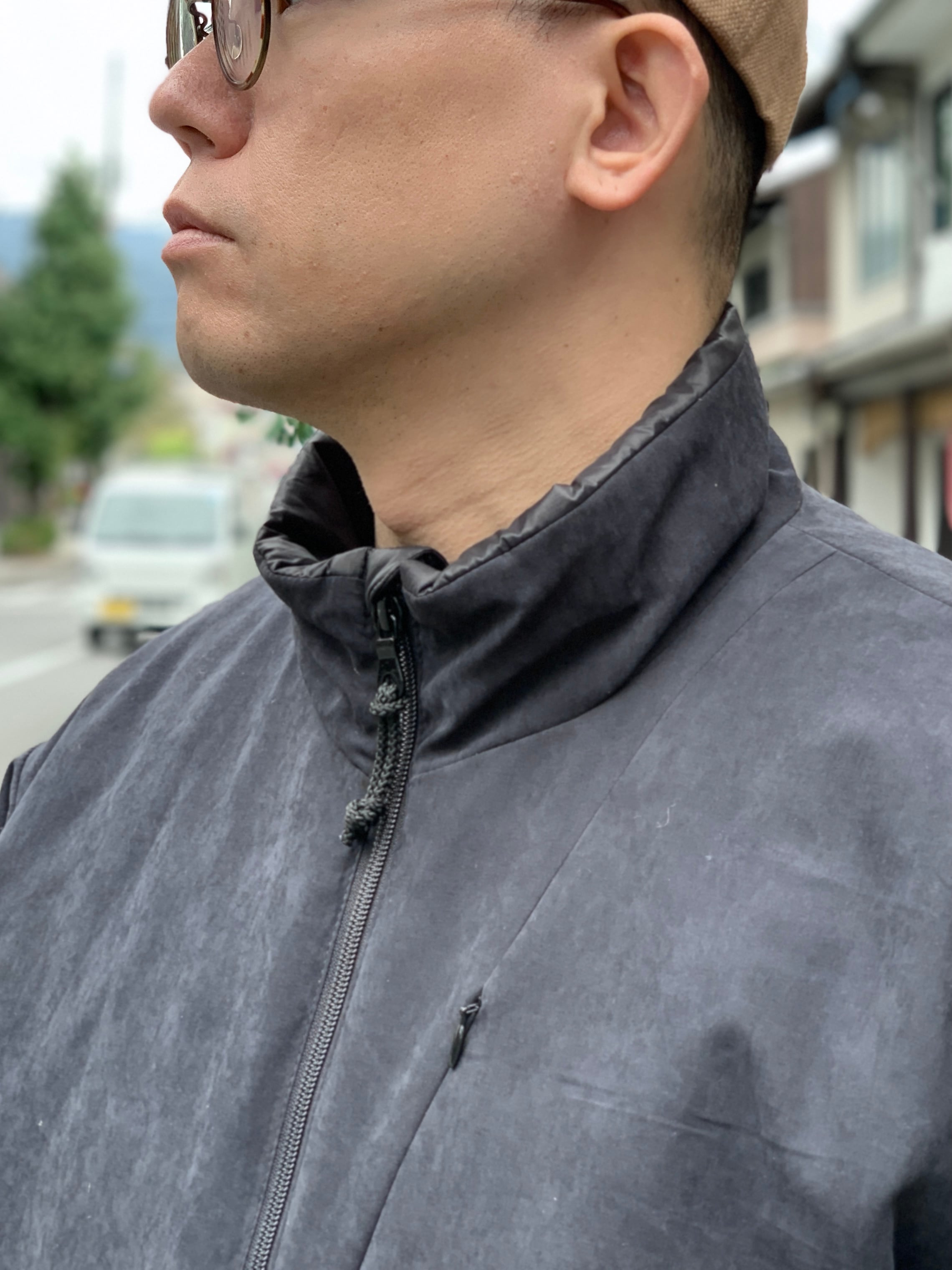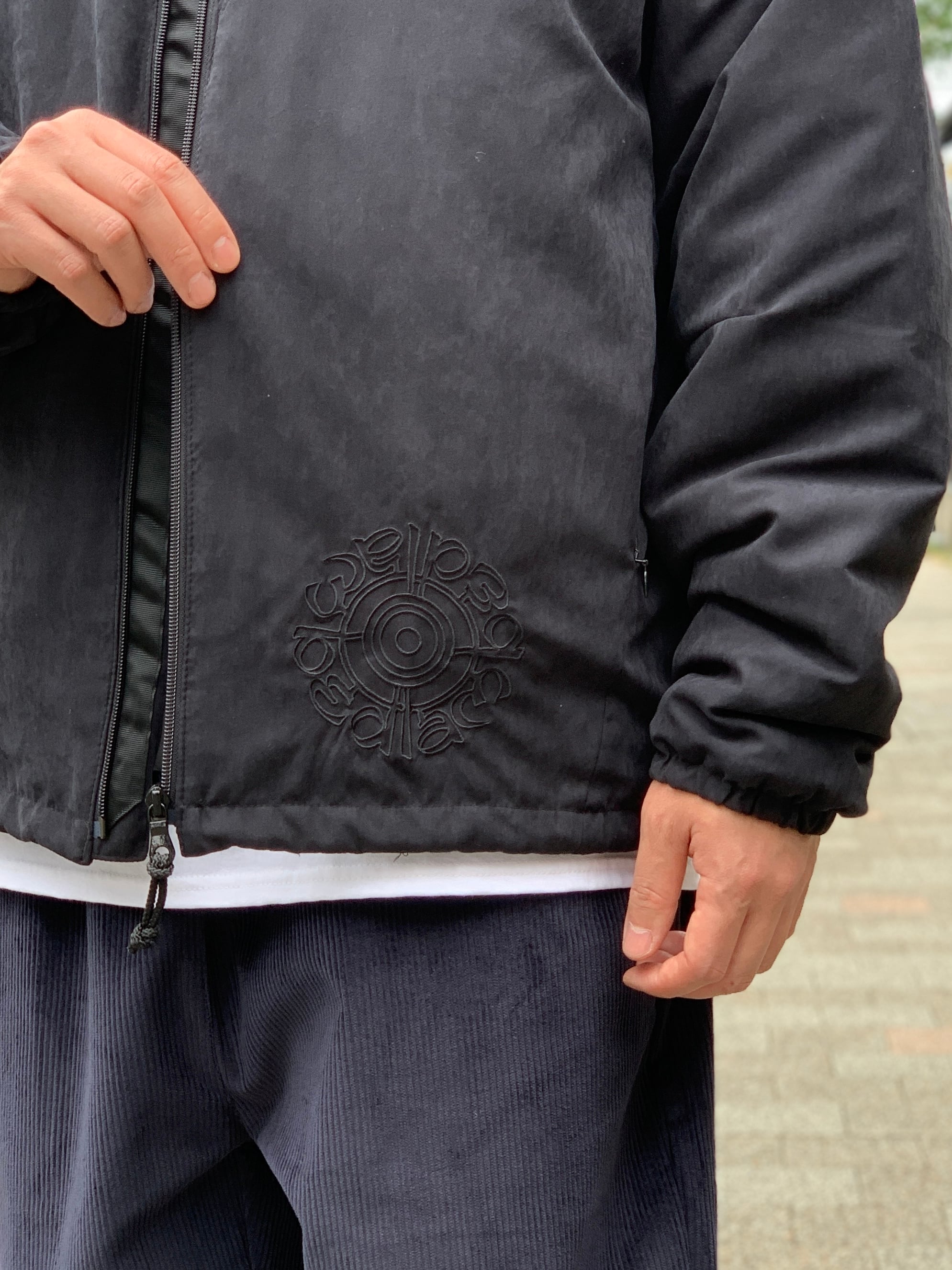 スタンドカラーに、左胸と両サイドにジップポケットと大きめでメッシュになった内ポケットが1つ、裾はゴム製のドローコードで絞れます。
