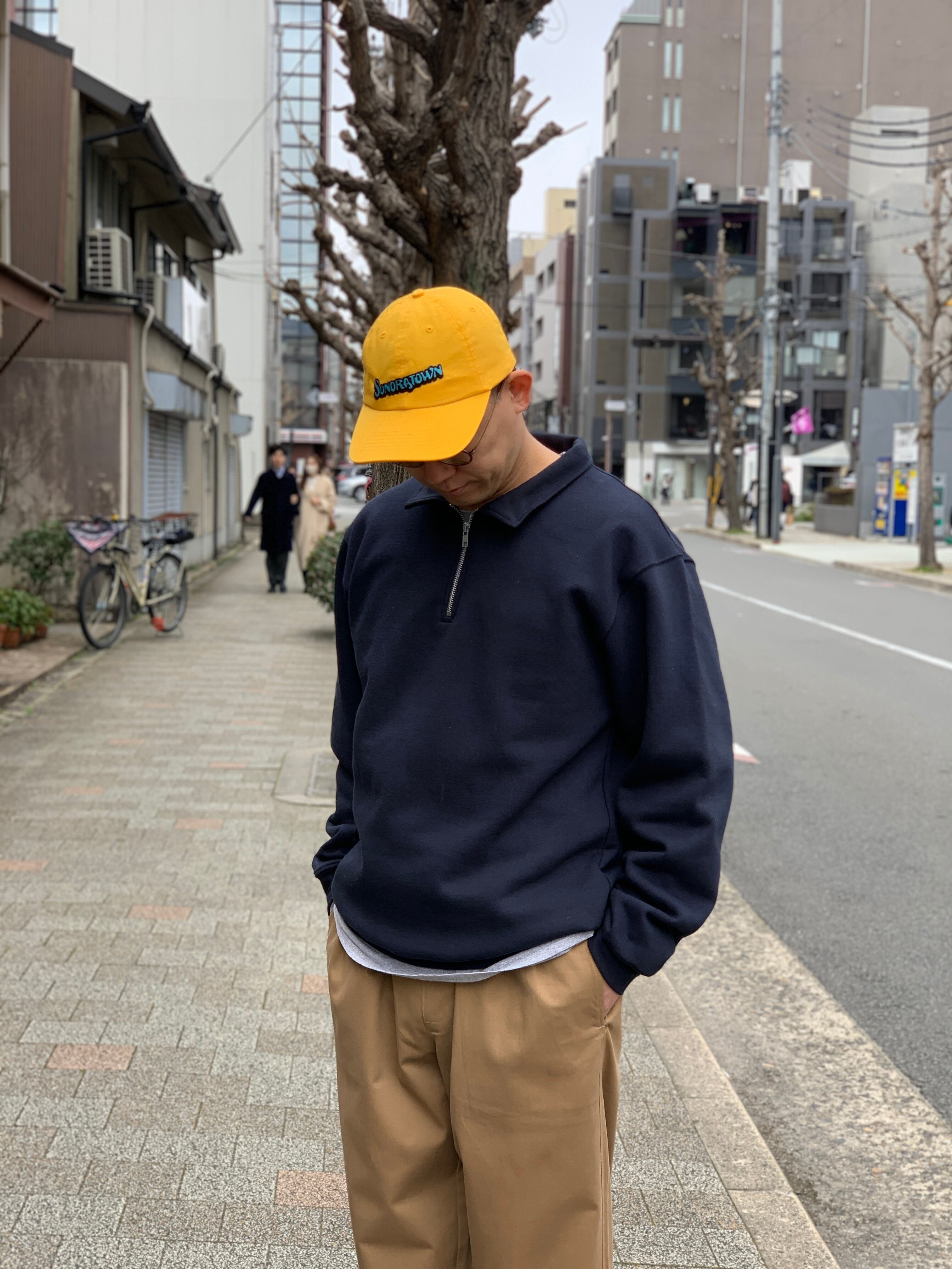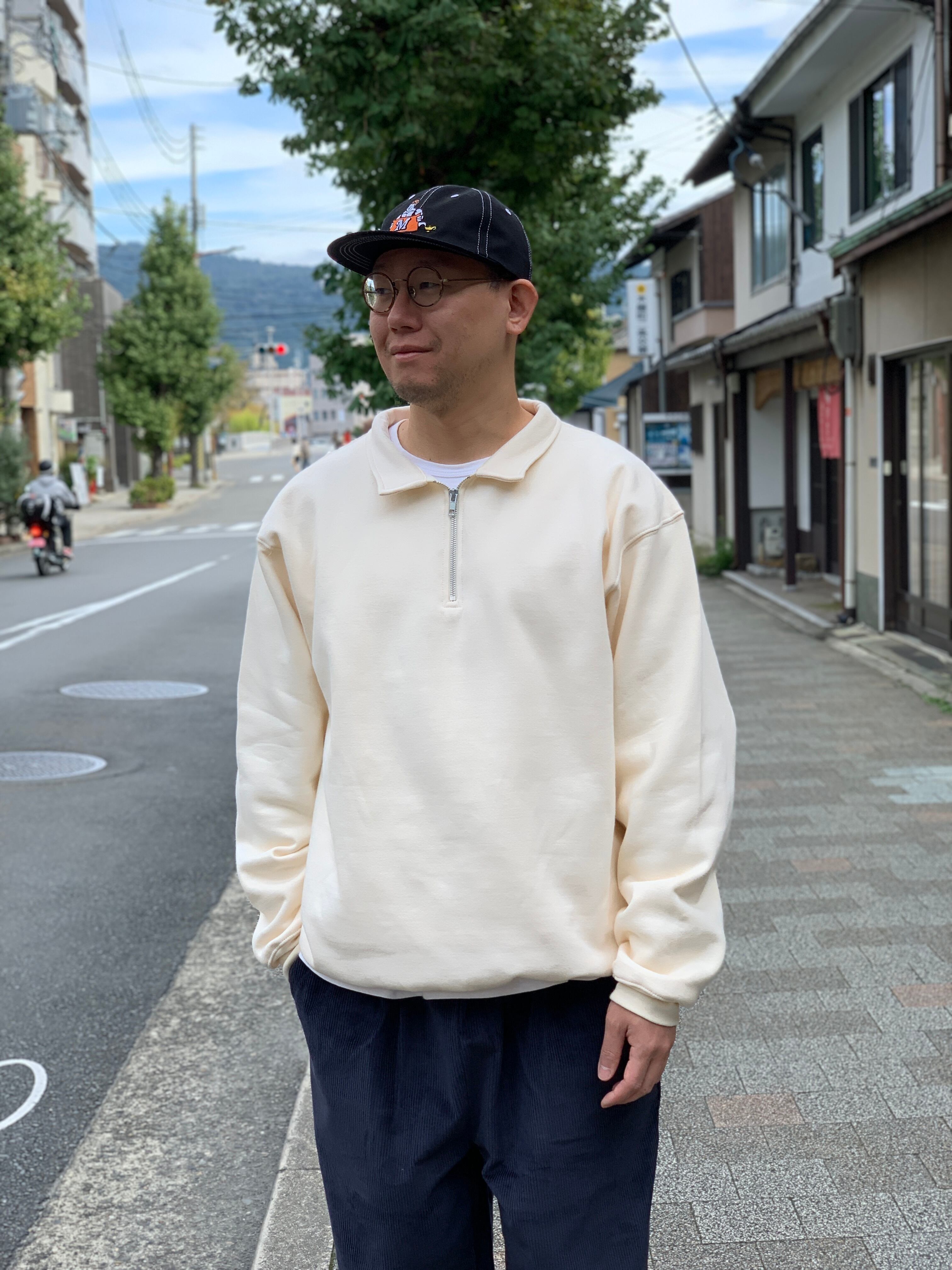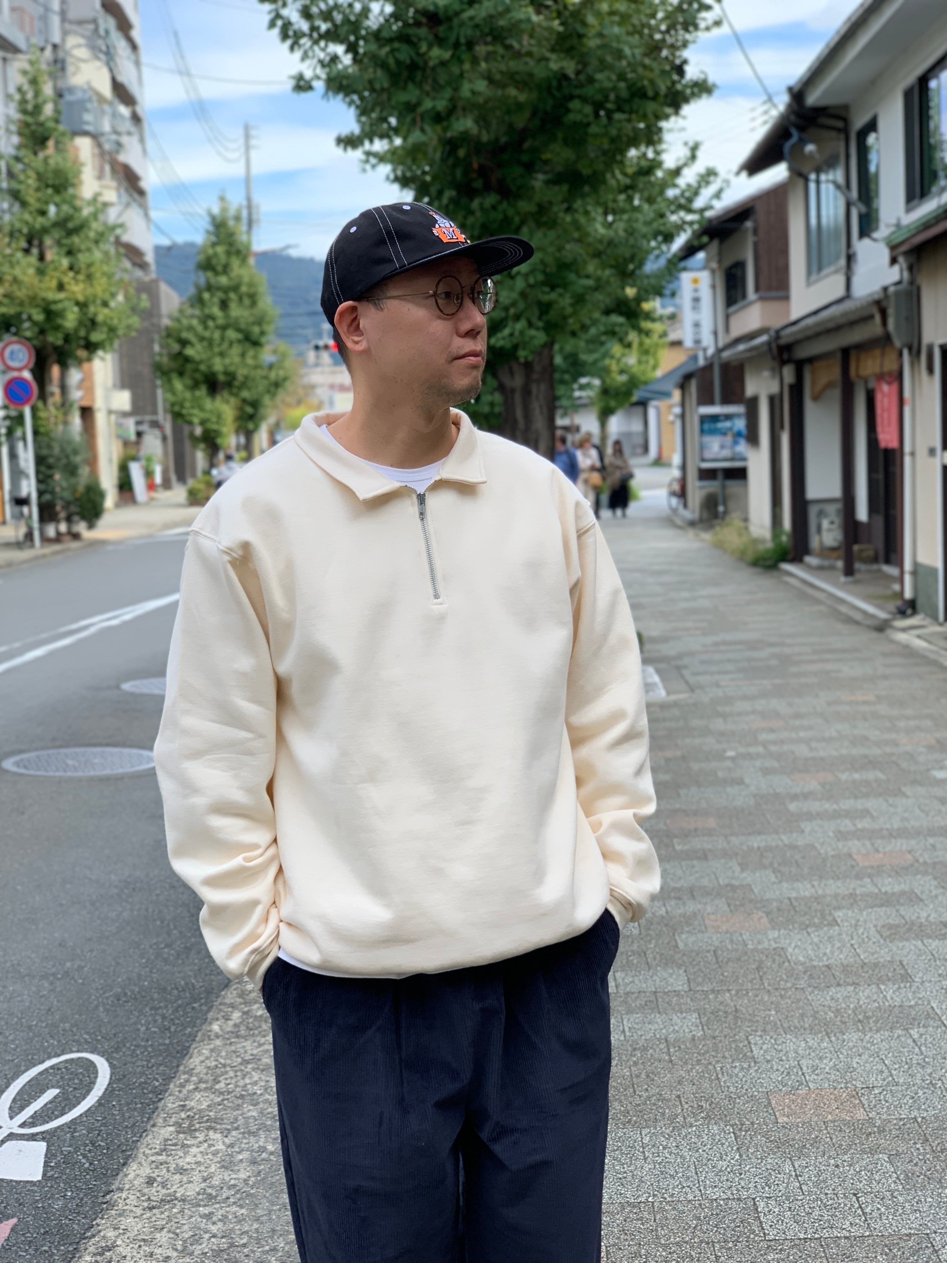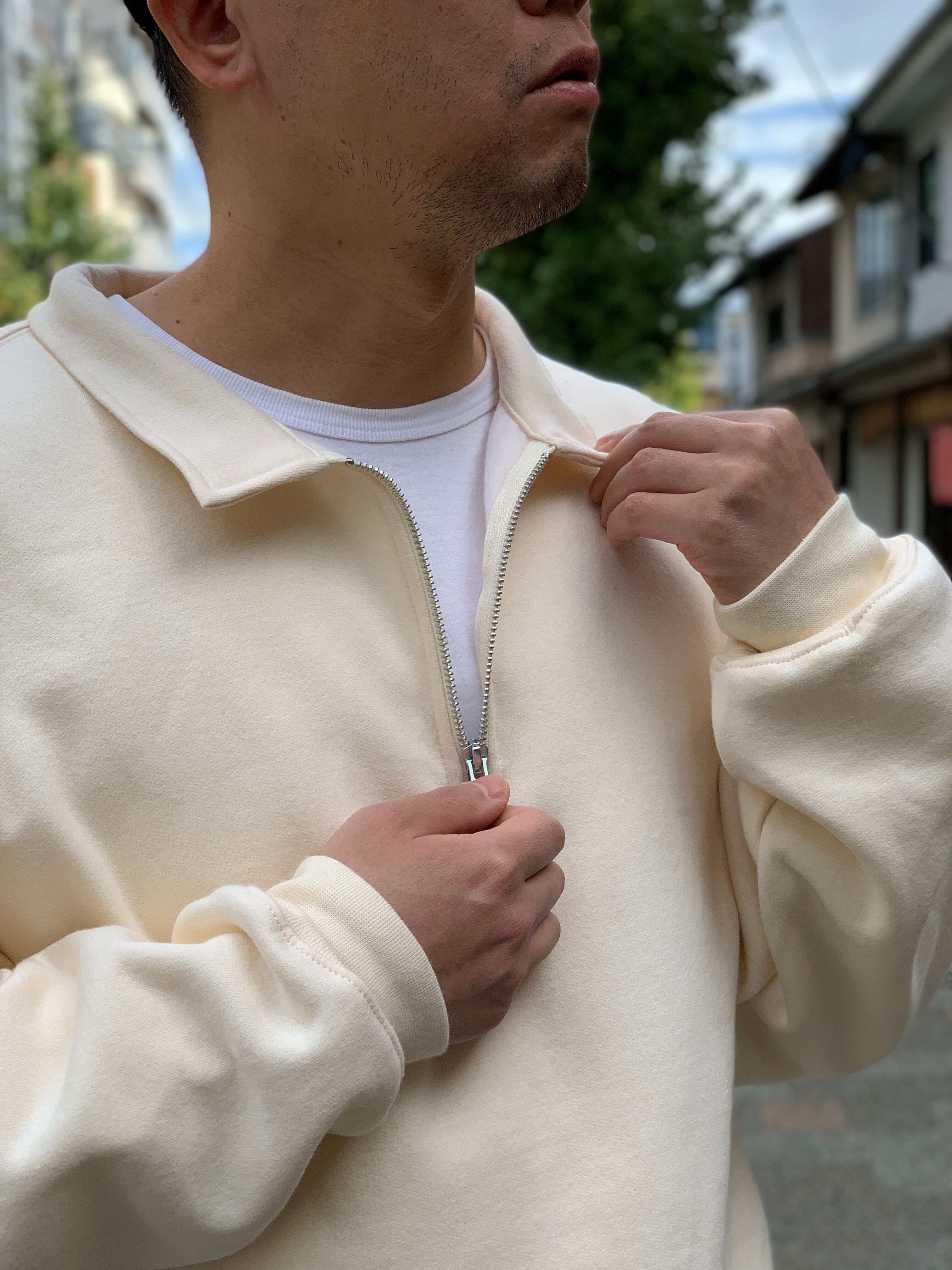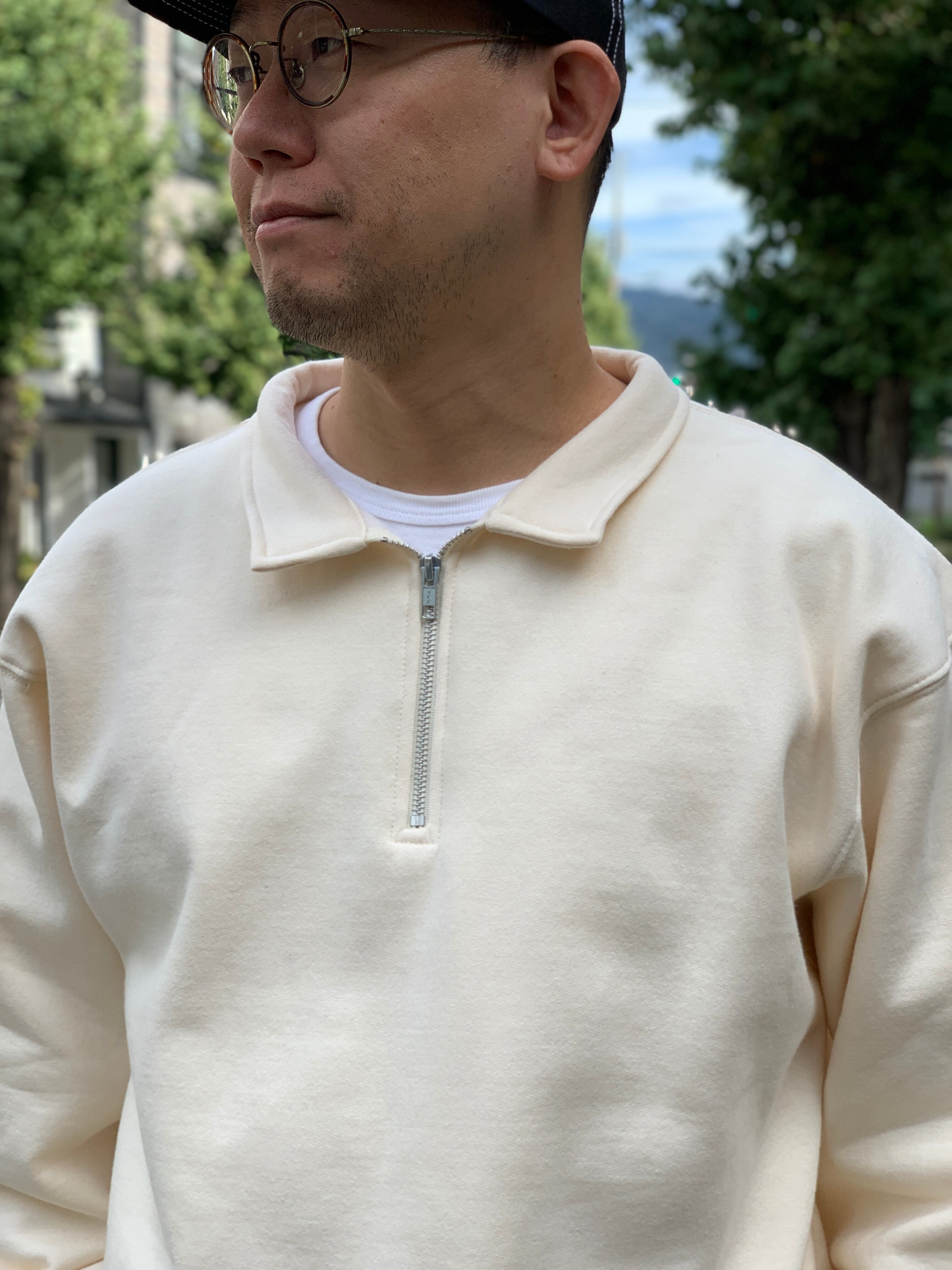 コットン80%ポリエステル20%の混紡生地のハーフジップスウェットです。