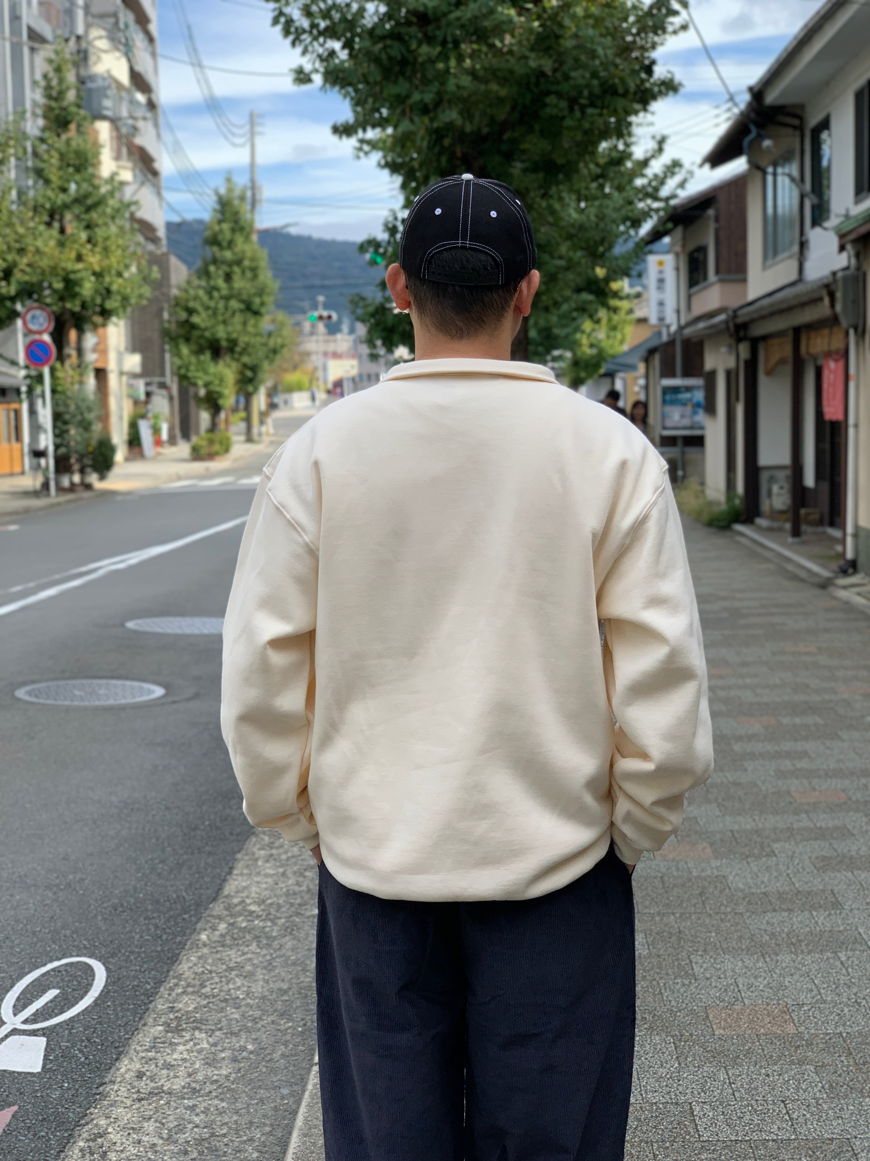 9.5ozとミドルオンスの厚さのスウェットで、襟の付いた首元が特徴的です。