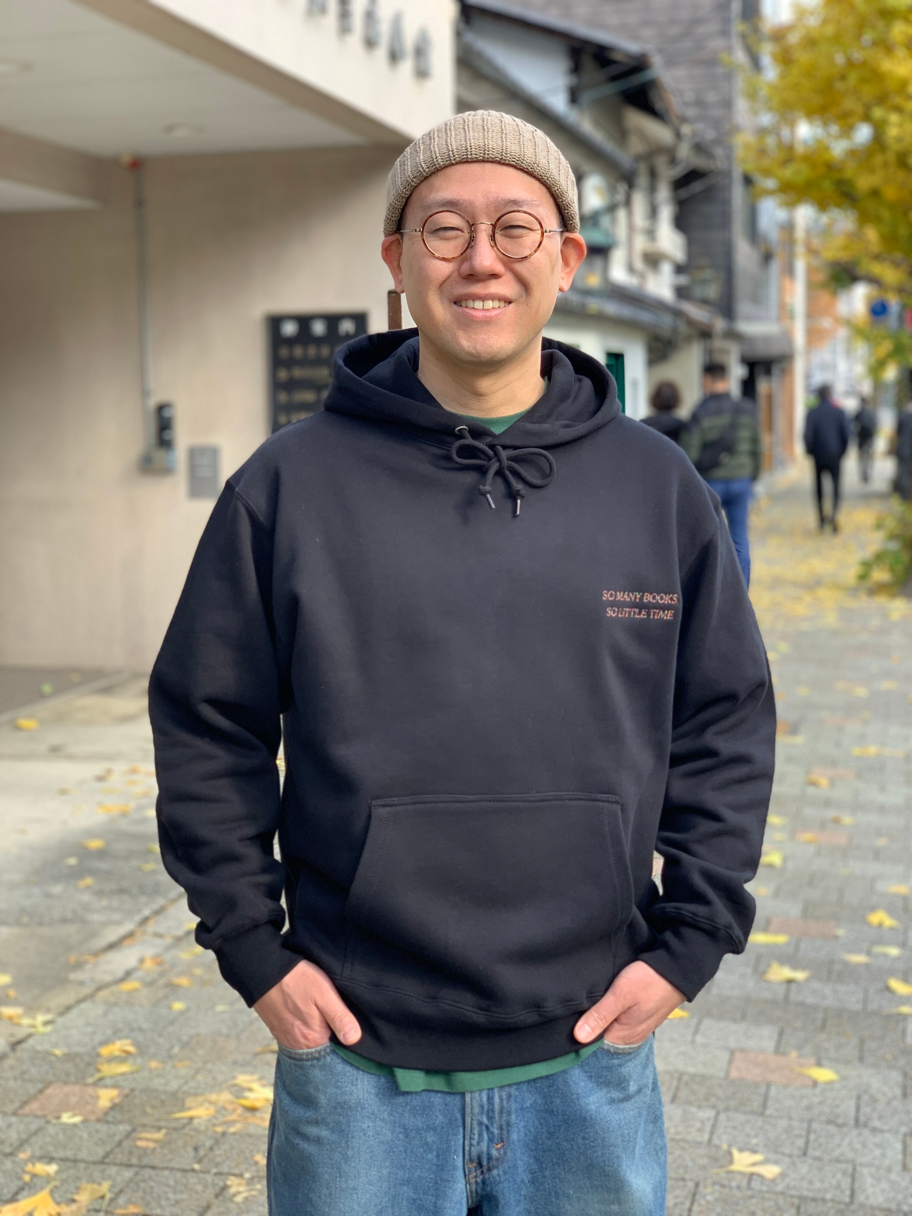フロントにSO MANY BOOKS, SO LITTLE TIME がレインボー刺繍され、バックにwackwackさんデザインのMY BOYがプリントされたスペシャルバージョンです。