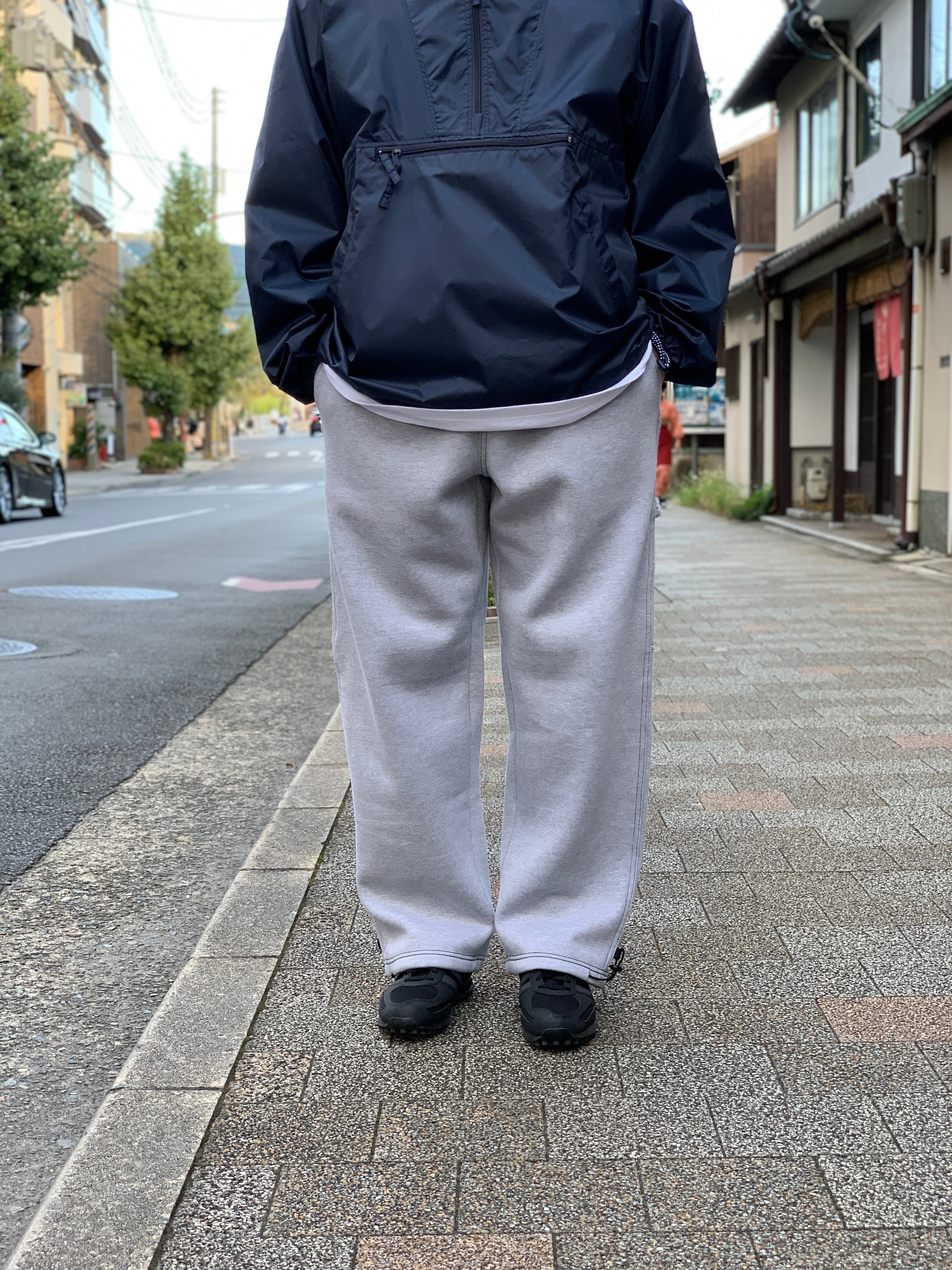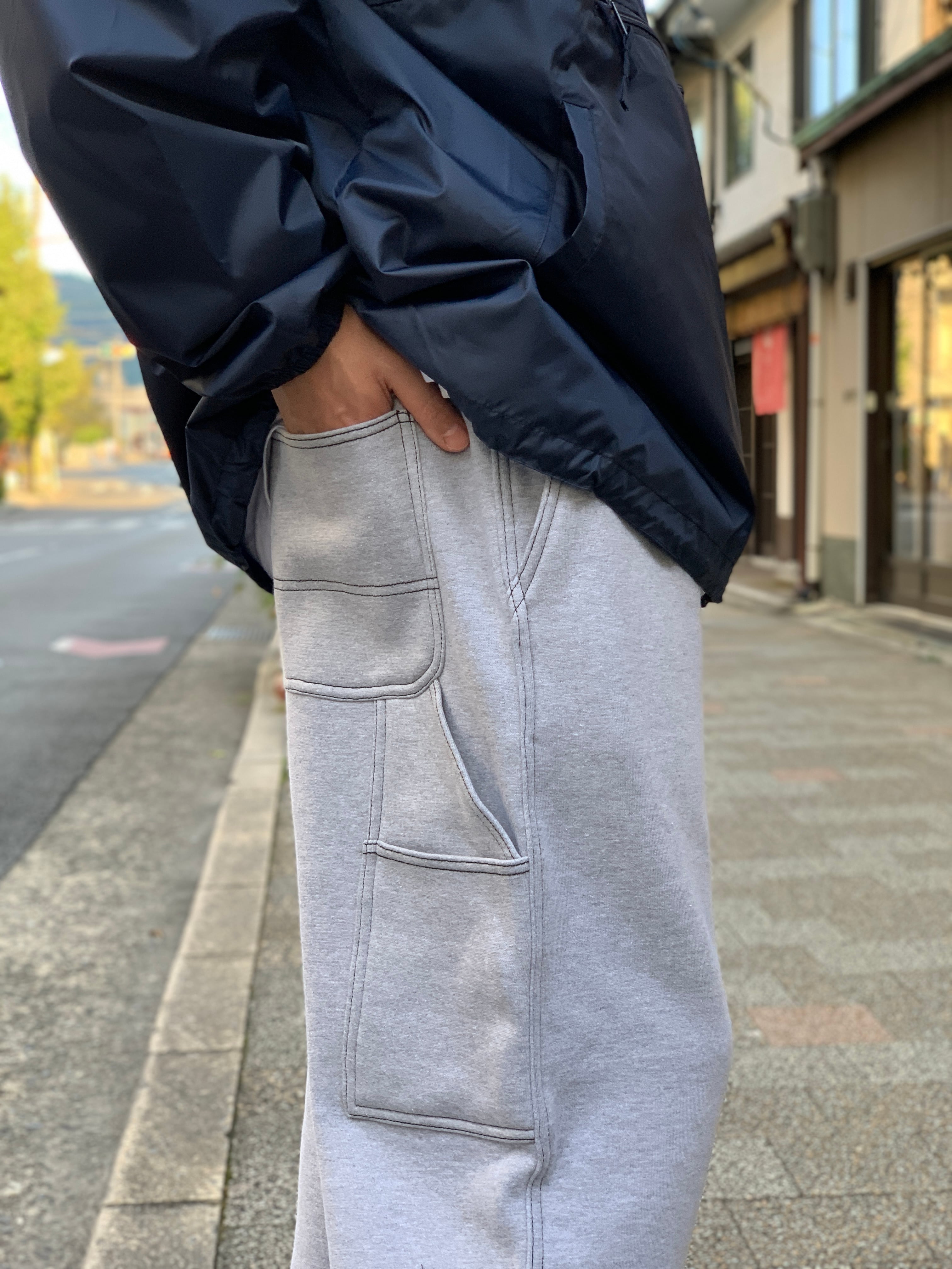 ペインターパンツの形ですが、スウェットパンツらしくウエストはゴムとドローコード、裾にもドローコードが付いていてシルエット、サイズを調整可能です。